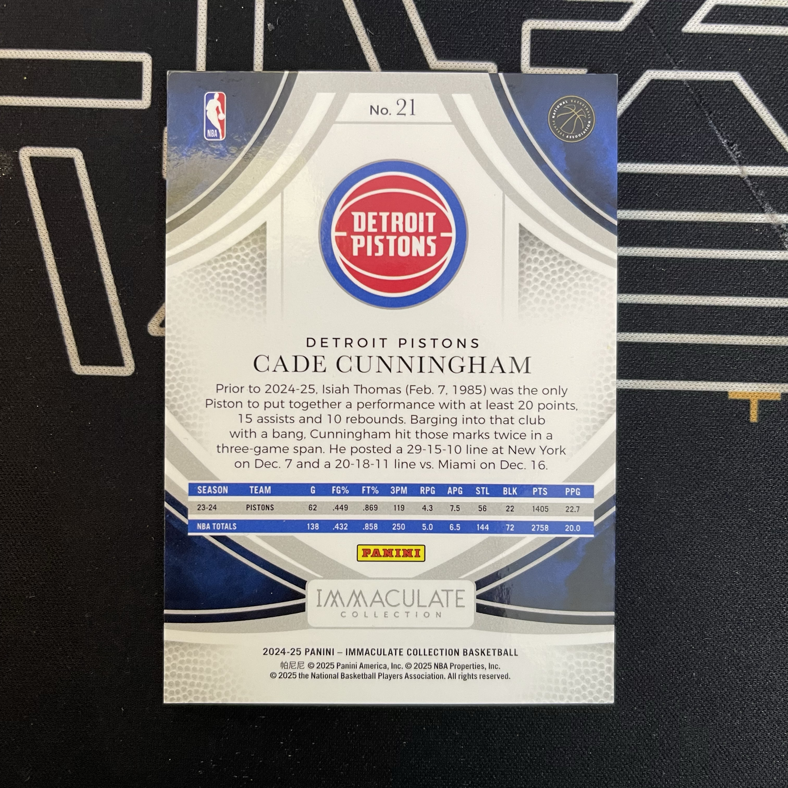 2024-25 Panini Immaculate 国际版 底特律活塞队 CC 凯德·坎宁安 Red 红色平行 15/27编 国际版独占 大连发货同发货地可合并 汉堡
