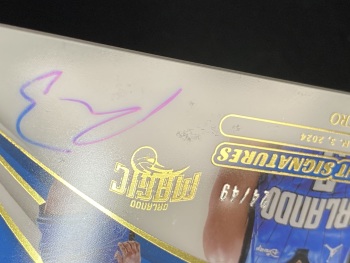 【关于卡品】:①出价即认同品相详情及拍卖规则,概不退换;②签字墨迹及卡片品相均如图,请看清楚细节图再拍,图片很清楚,需要细节图请提前咨询站内信或VX;③折射系列经常会有一道横线印刷线是出品印刷问题,不属于卡品残次范畴。国宝、IMM、NOIR等厚卡有轻微白边白角属于正常现象!镜面系列等卡面轻印划痕、印刷自带痕迹或覆膜不平起泡等卡片自身问题均为通行品。老卡有白边白角属于正常卡品。评级卡砖上的划痕和破损以及评级砖内的卡有卡品问题一律不属于品相问题。PZ、OP等各种折射系列表面的轻微划痕为正常卡品。关于以上卡品问题请确认无误再出价,介意者勿拍,要评级追求金标和10分者请直接购买评级卡。④快递过程中如出现包装破损、暴力变形、遗失等问题,请自行联系顺丰客服处理理赔,提供购买订单记录和物流记录给顺丰即可,如有高价卡有保价需求,请主动联系我们!⑤所有多卡打包lots标均不保卡品,品控和艺术家勿扰,感谢理解!【任何疑问请添加咨询VX:cglgzh01】