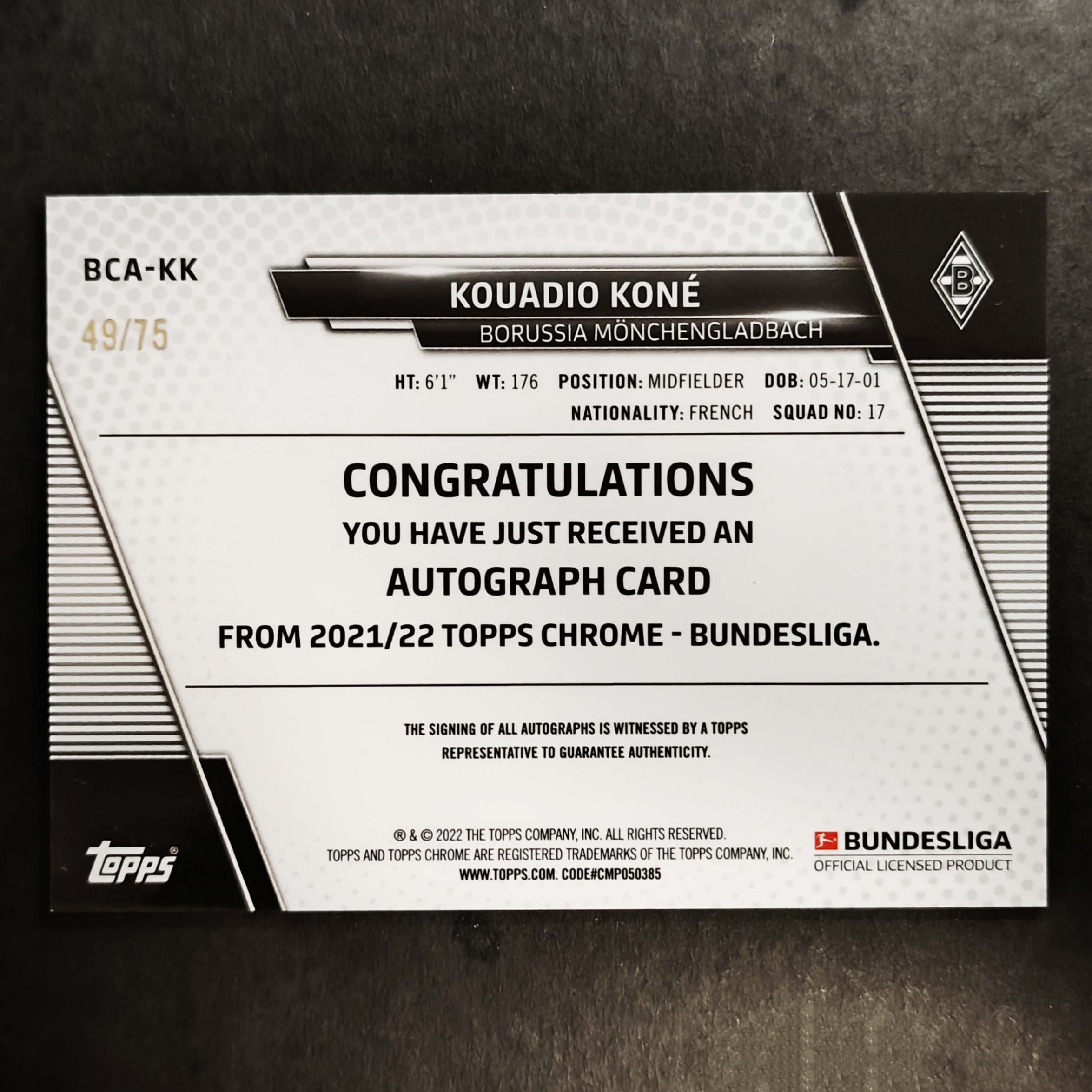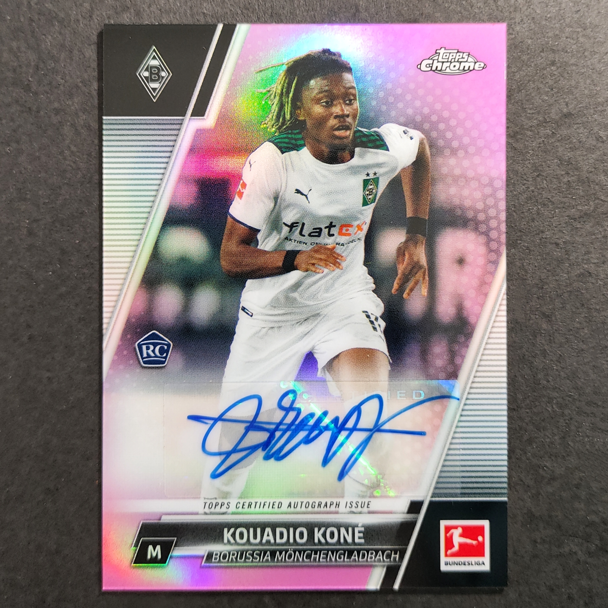 2021-22 Topps Chrome Kouadio Koné RC Manu Kone 科内/75编粉折蓝折签字 法国国家队主力中场 德甲德国门兴格拉德巴赫意甲意大利罗马杜埃基蒂克马尤卢奥利塞