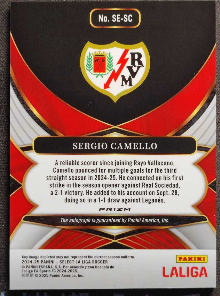 2024-25 Panini Select Sergio Camello 巴列卡诺 马竞 西班牙 🇪🇸 潜力新星 塞尔希奥 卡梅略 签字 贴签 银折 折射 卡品如图 收藏必备
