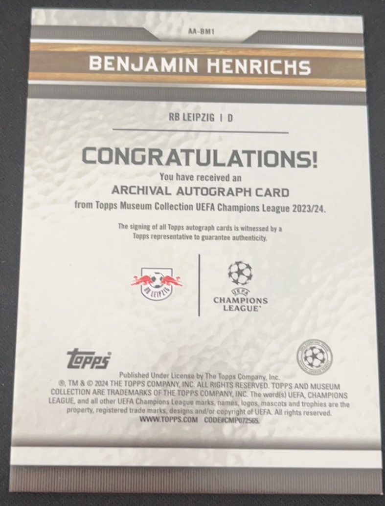 2023-24 Topps UEFA Champions League Benjamin Henrichs 欧冠 博物馆 莱比锡红牛 亨里希 德国 🇩🇪 签字 /25编 低编 卡品如图 收藏必备