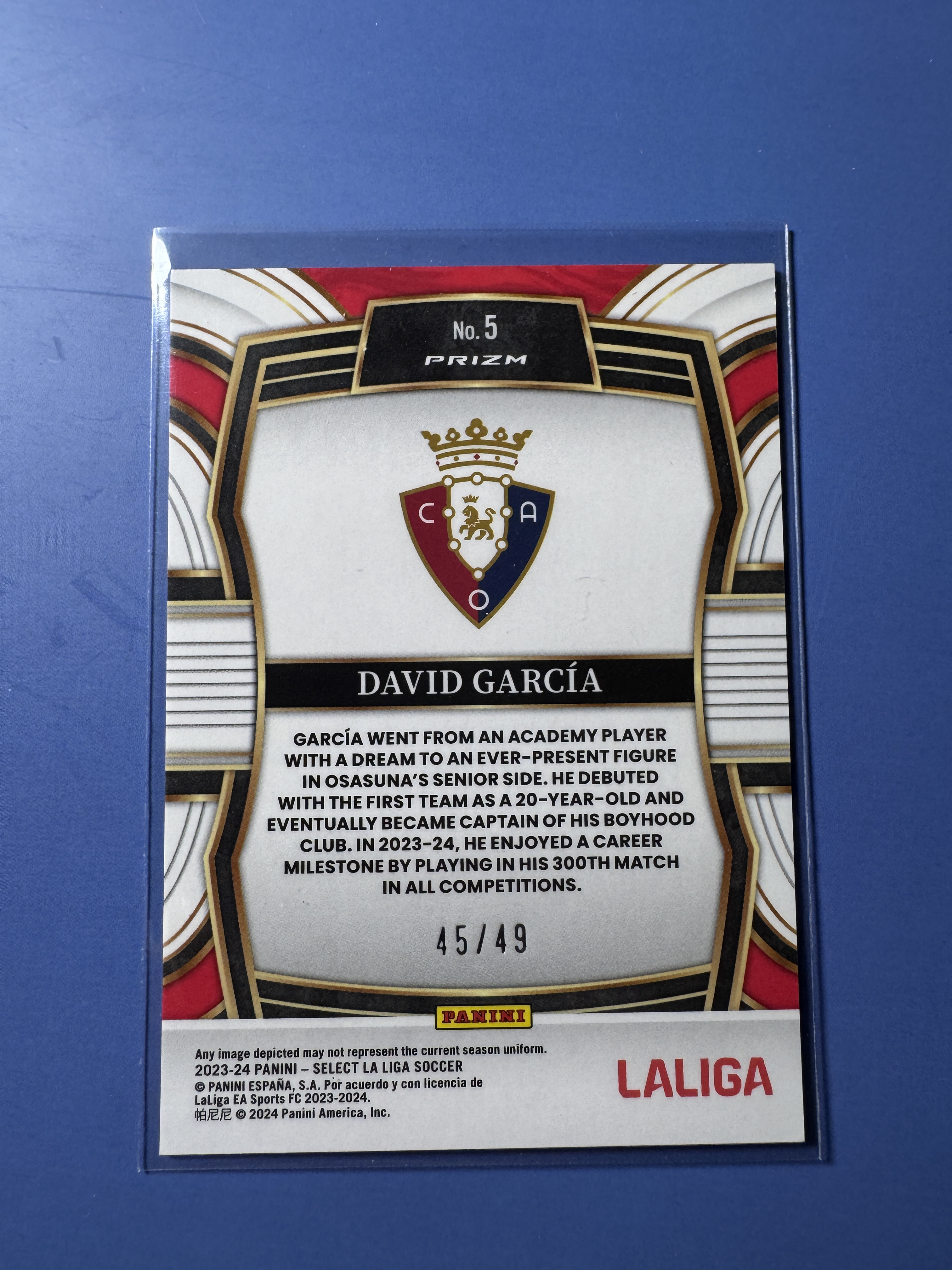 2023-24 Panini Select david garcia 西甲 戴维 加西亚 45/49编 扎染 扳平者特卡 奥萨苏纳 卡品如图