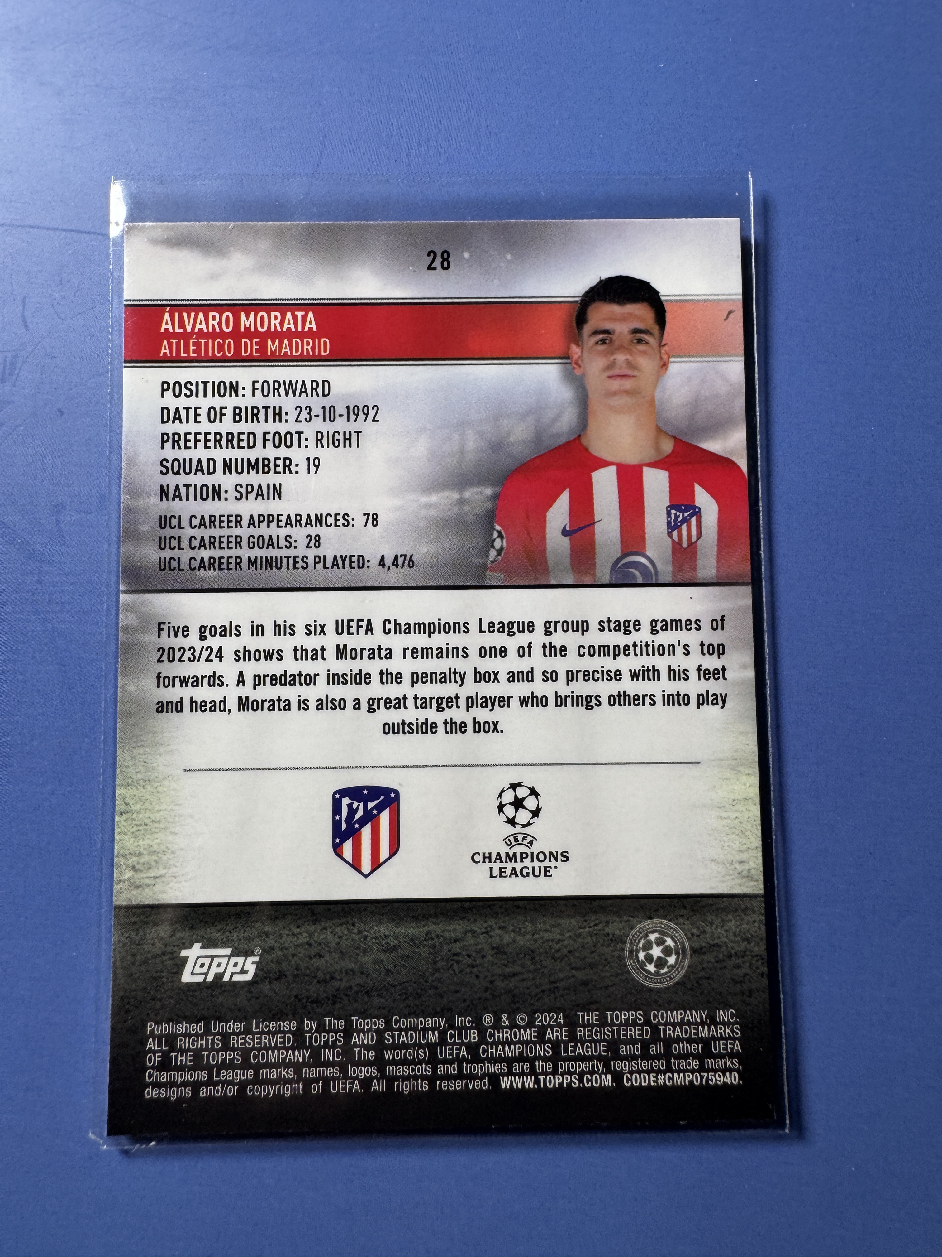 2024 Topps stadium club Alvaro Morata 阿尔瓦罗 莫拉塔 马德里竞技 马竞 西班牙 欧冠 竞技场 07/75编 褐棱镜折 Hyper折 卡品如图