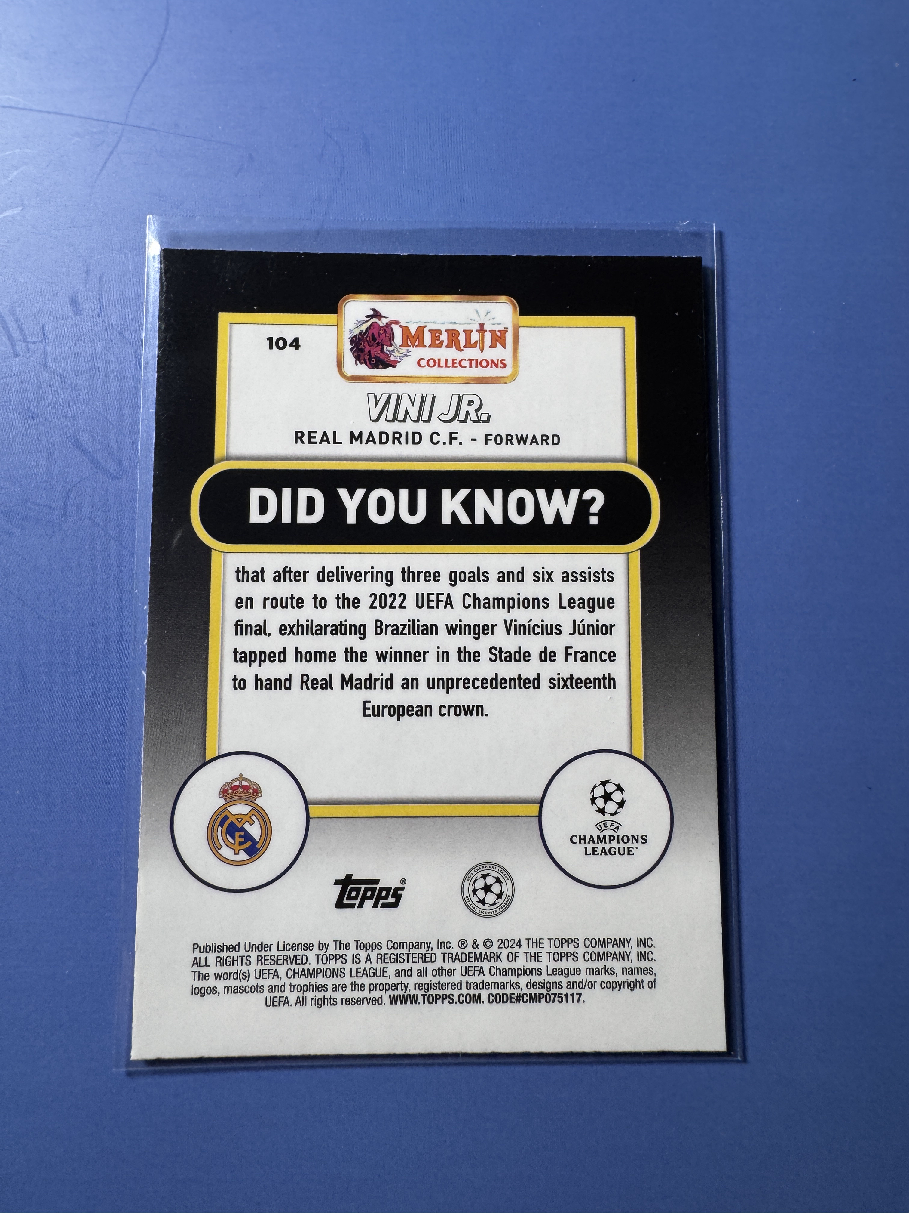 2024 Topps Merlin vini jr 维尼修斯 小熊 皇家马德里 011/199编 青折 欧冠 梅林 卡品如图