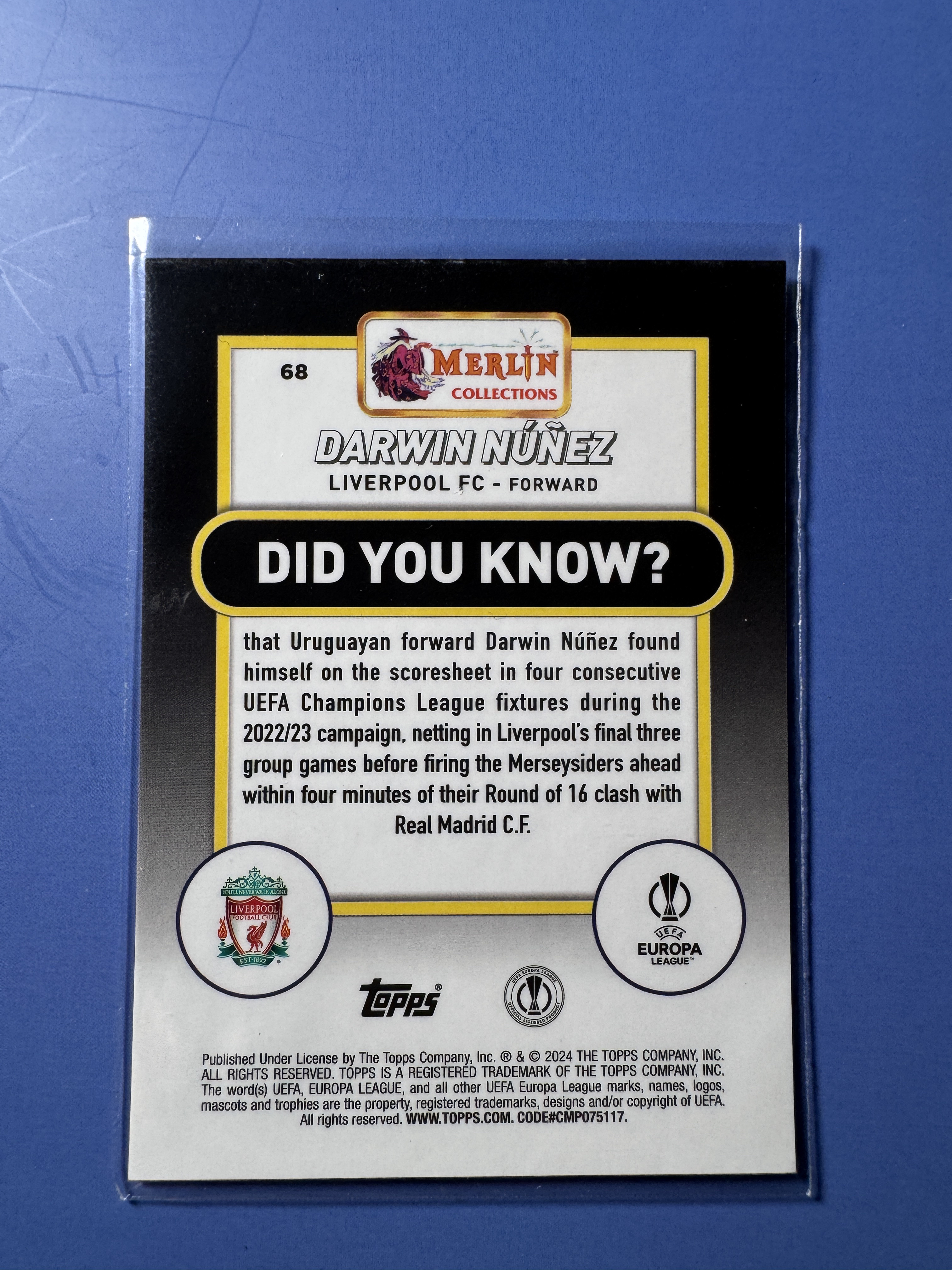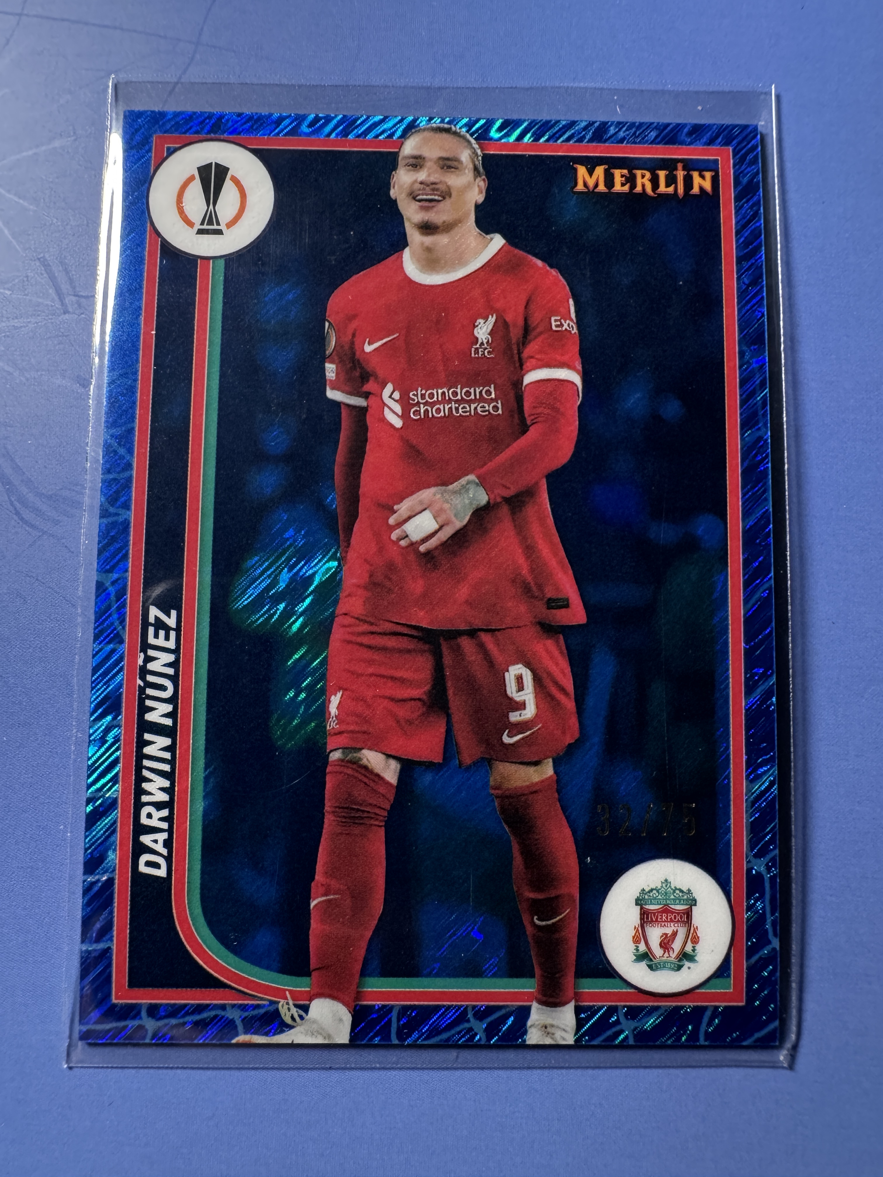 2024 Topps Merlin chrome Darwin Nunez 努涅斯 乌拉圭 利物浦 蓝折 32/75编 梅林 欧冠 实卡精美 收藏必备 卡品如图