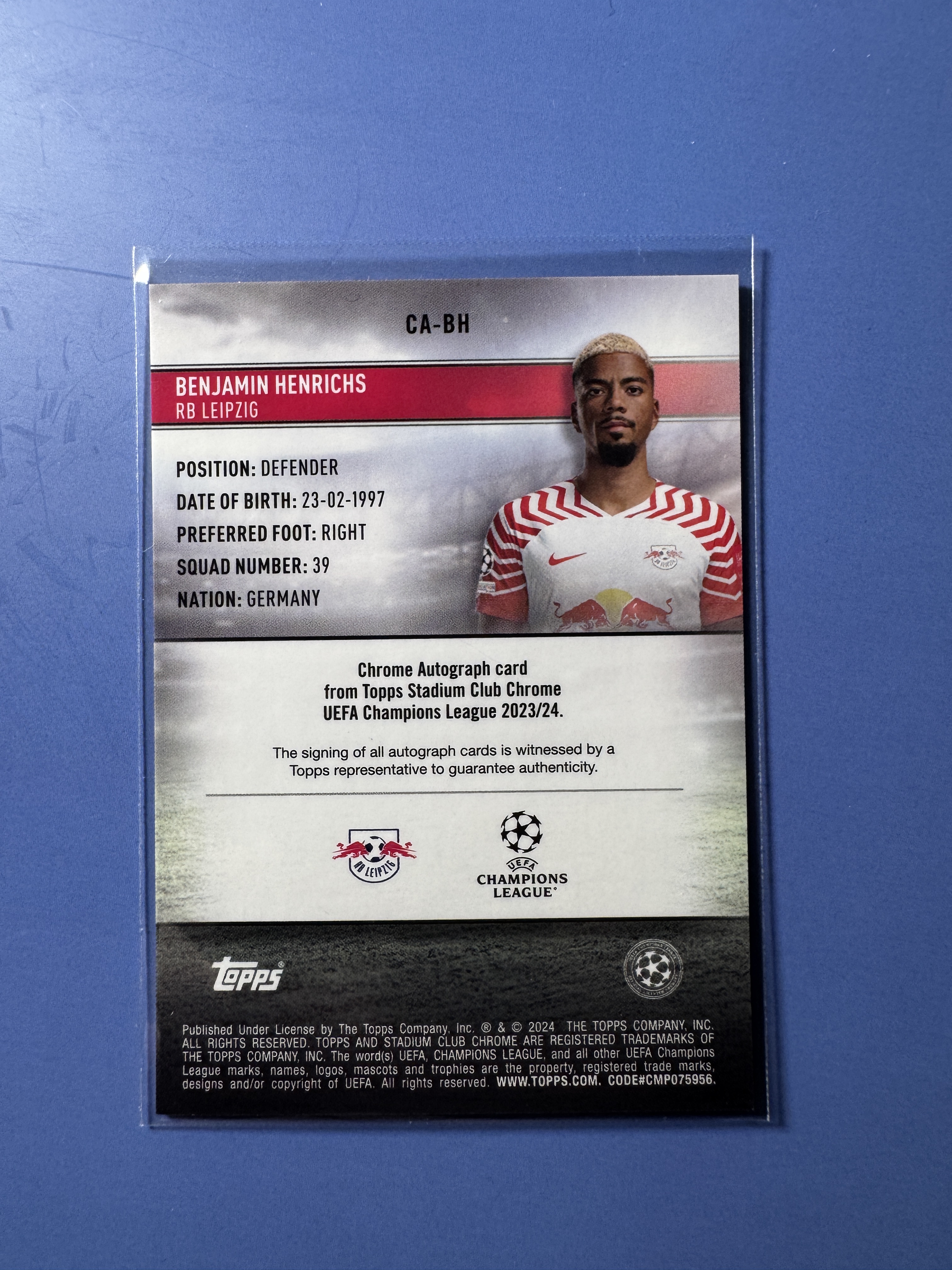 2023-24 Topps stadium club Benjamin Henrichs 本杰明 亨里希斯 竞技场 银折 签字 红牛后卫 实卡超美 卡品如图