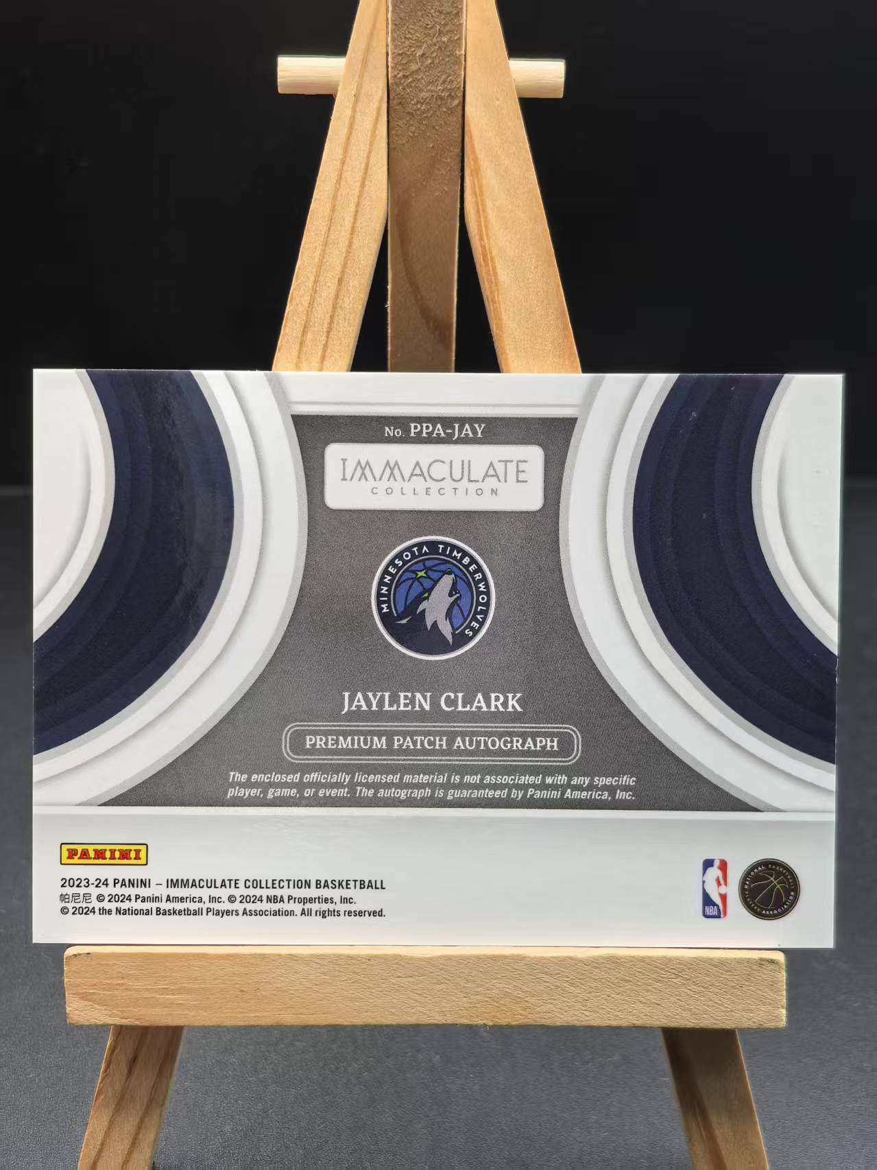2023-24 Panini Immaculate Jaylen Clark RC 舟 爱咪咪 森林狼 新秀 杰伦 克拉克 RPA 卡签 50编 签字 大窗暴力球衣 微白边角110410(Gzhen