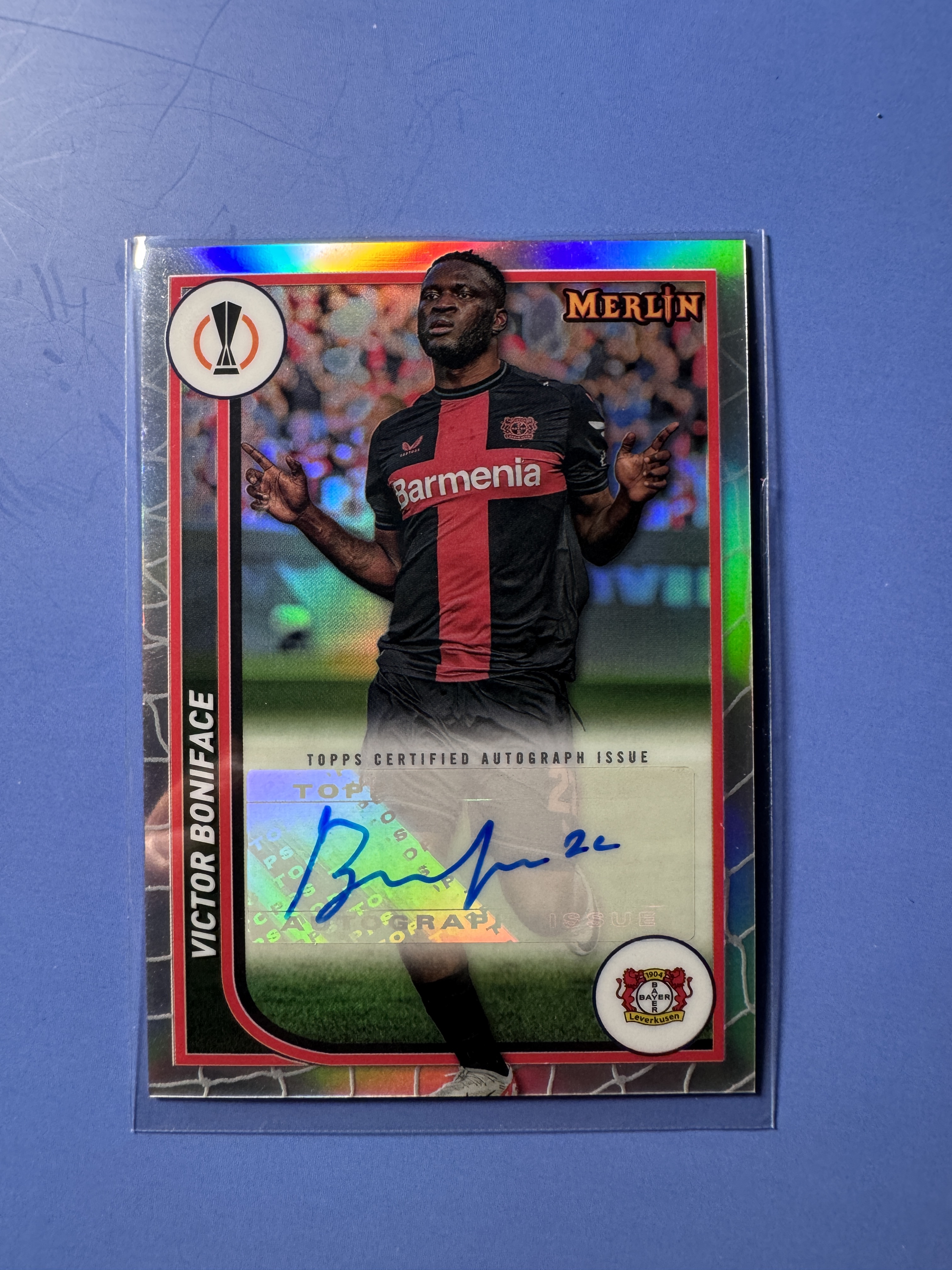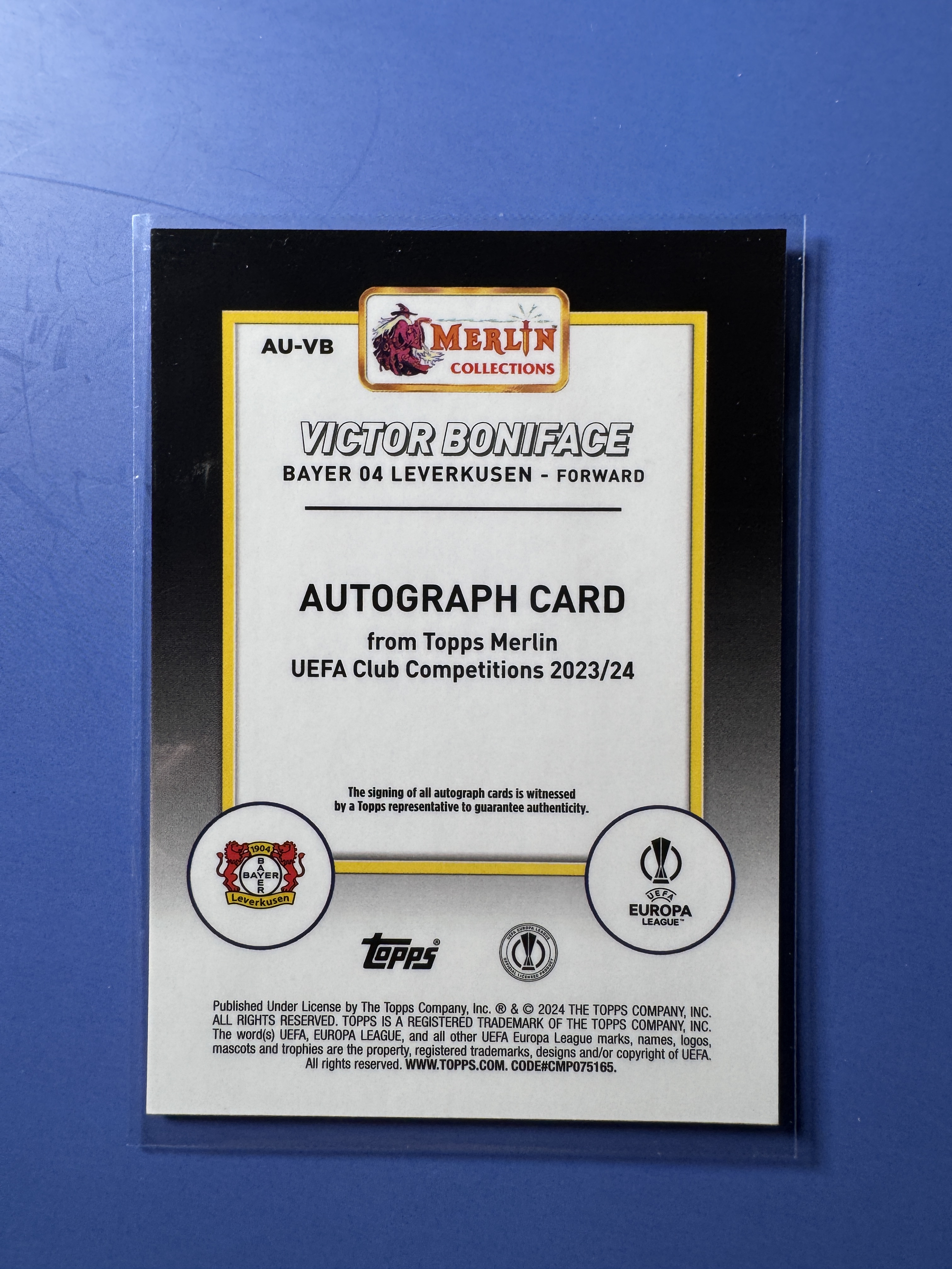 2023-24 Topps Merlin chrome Victor Boniface 欧冠梅林TC 勒沃库森 云达不莱梅 博尼费斯 签字 银折 卡品如图