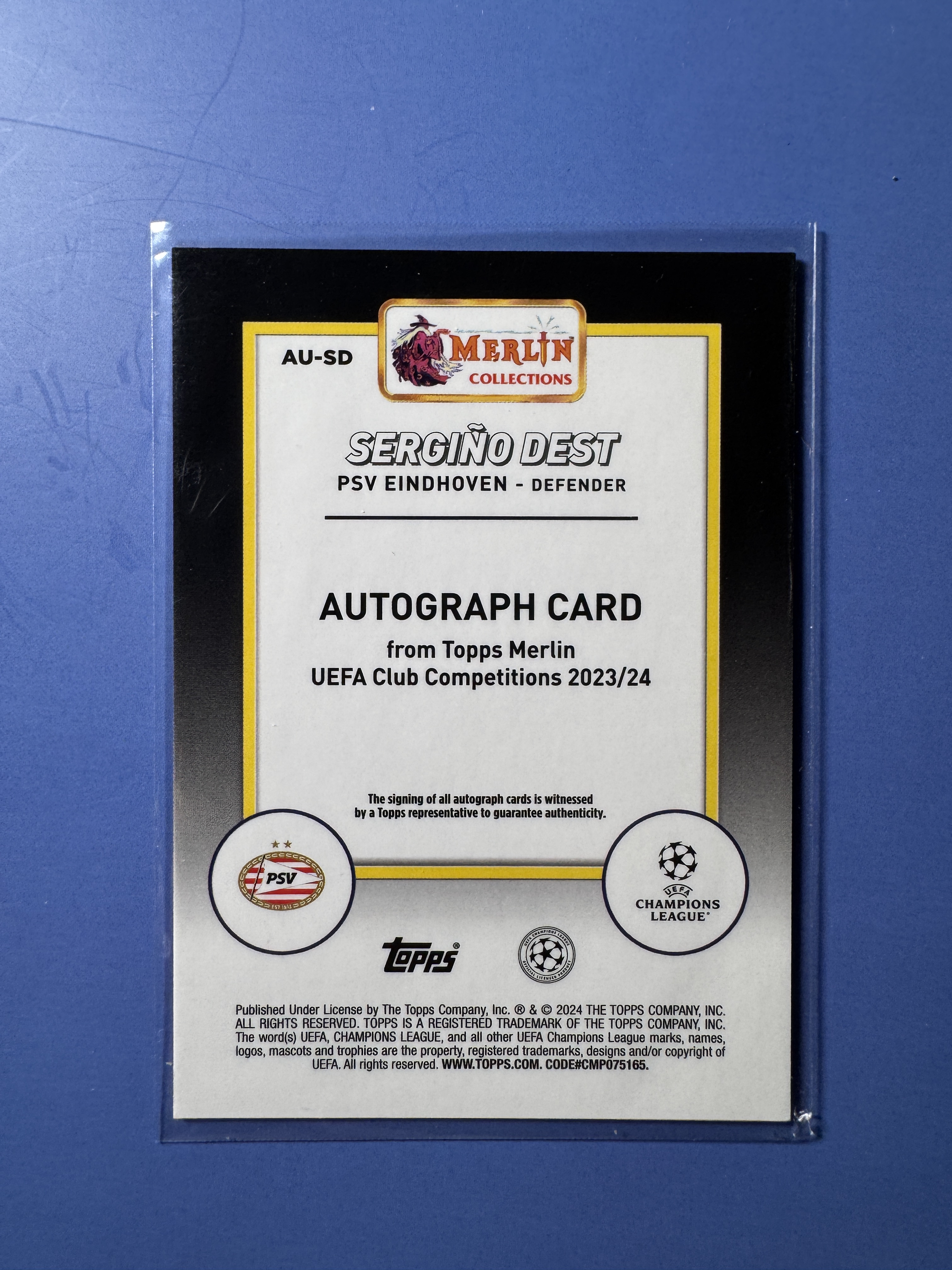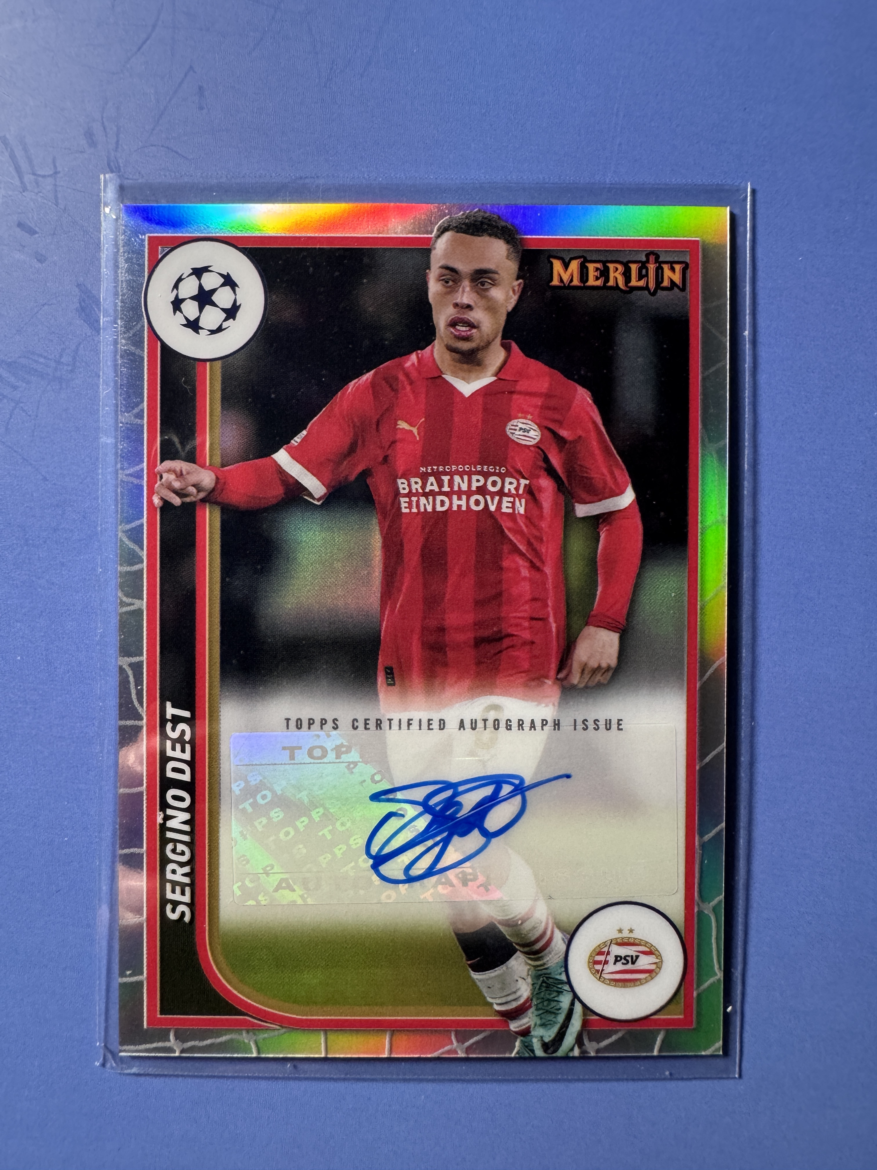 2024 Topps Merlin chrome Sergiño Dest 塞尔吉诺 塞尔吉尼奥 德斯特 银折 签字 梅林 埃因霍温 巴萨 美国 卡品如图