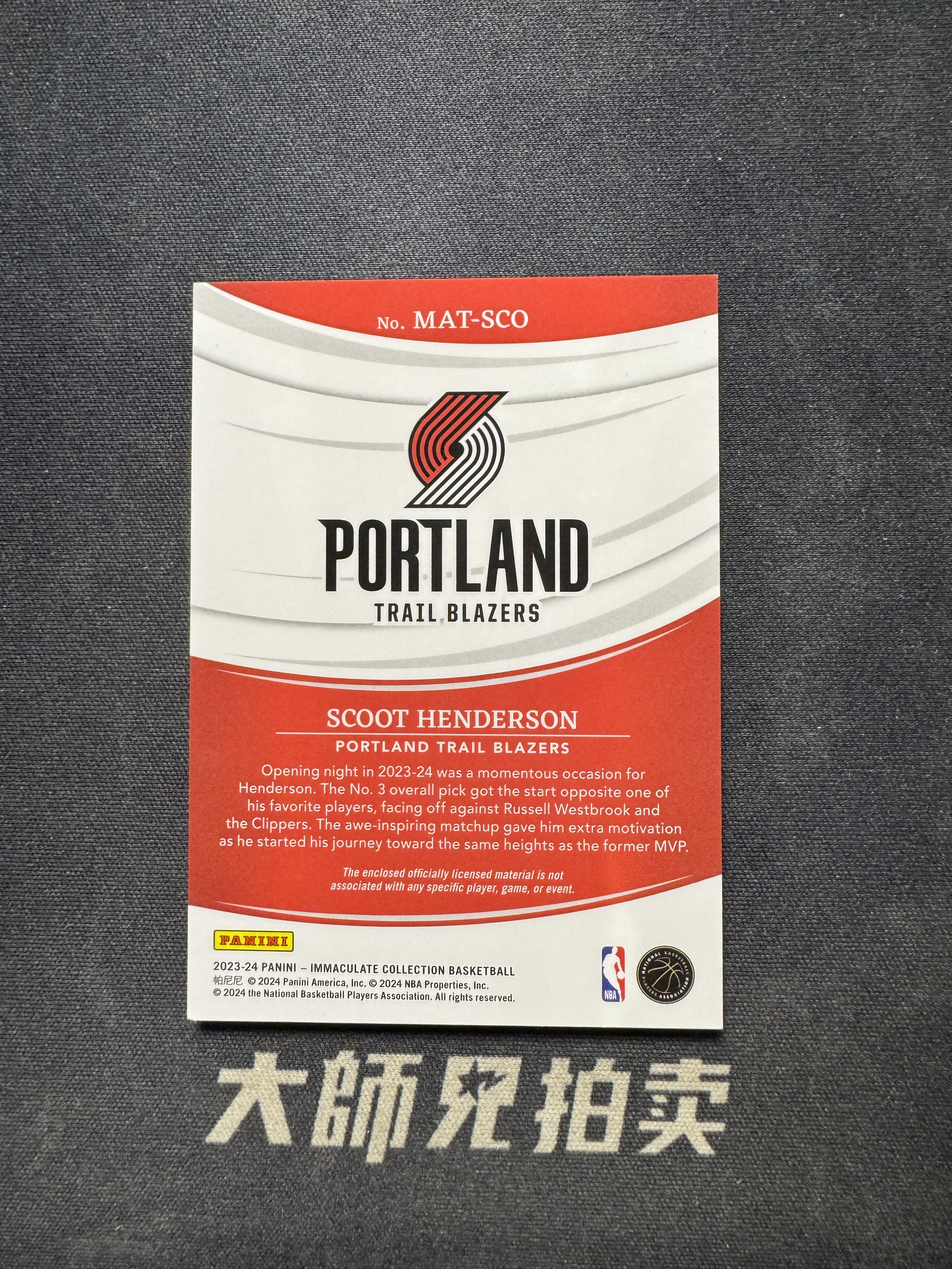 【大师兄拍卖】2023-24 Panini immaculate SCOOT HENDERSON RC 开拓者 亨德森 新秀 /99编 小窗球衣物料 通行品 -Norman-