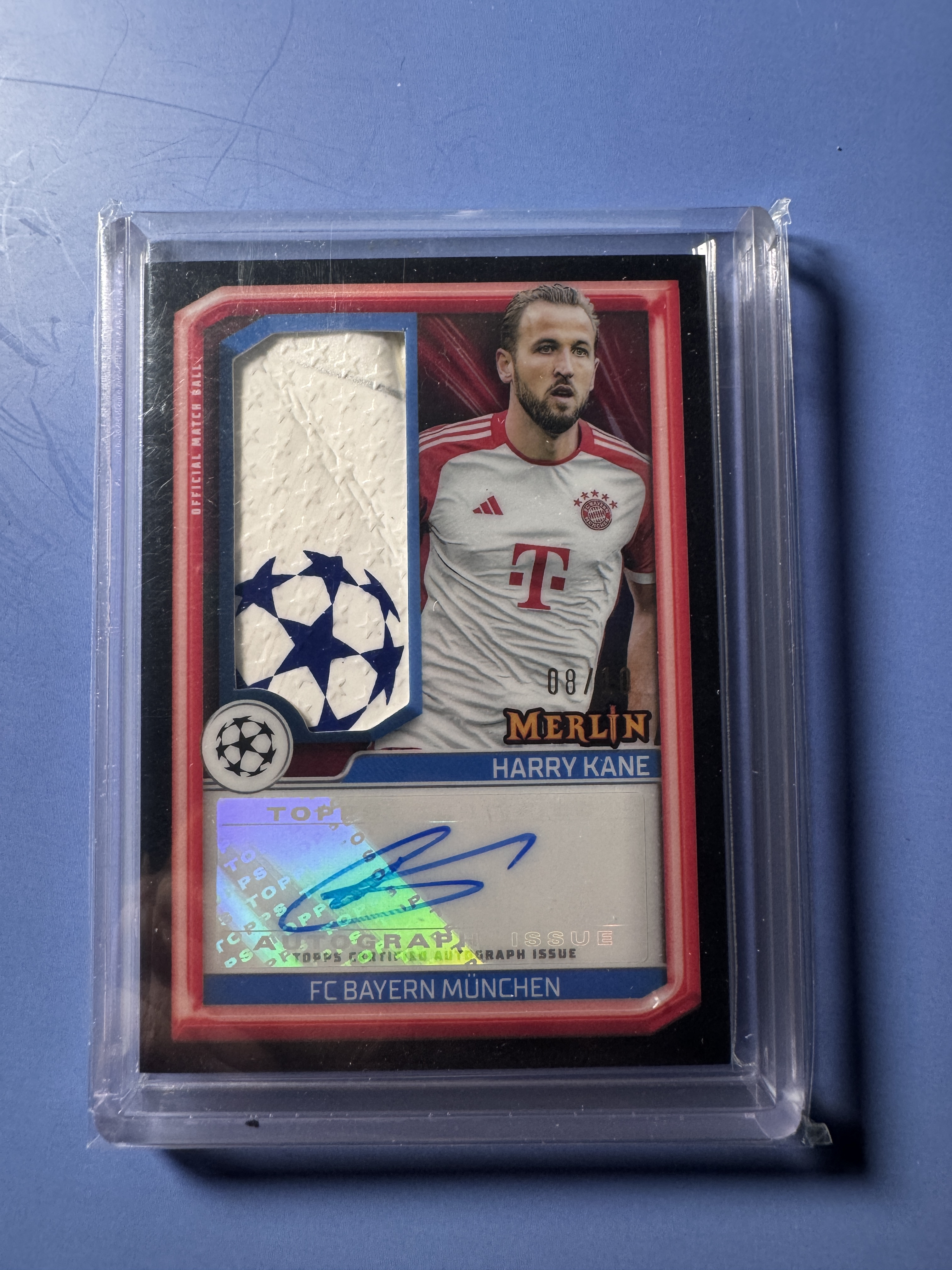 2024 Topps Merlin chrome Harry Kane 欧冠 梅林 哈里 凯恩 签字 08/10编 黑折 物料 球皮 暴力 拜仁 热刺 英格兰 德甲冠军 大英帝星 大比例 卡品如图