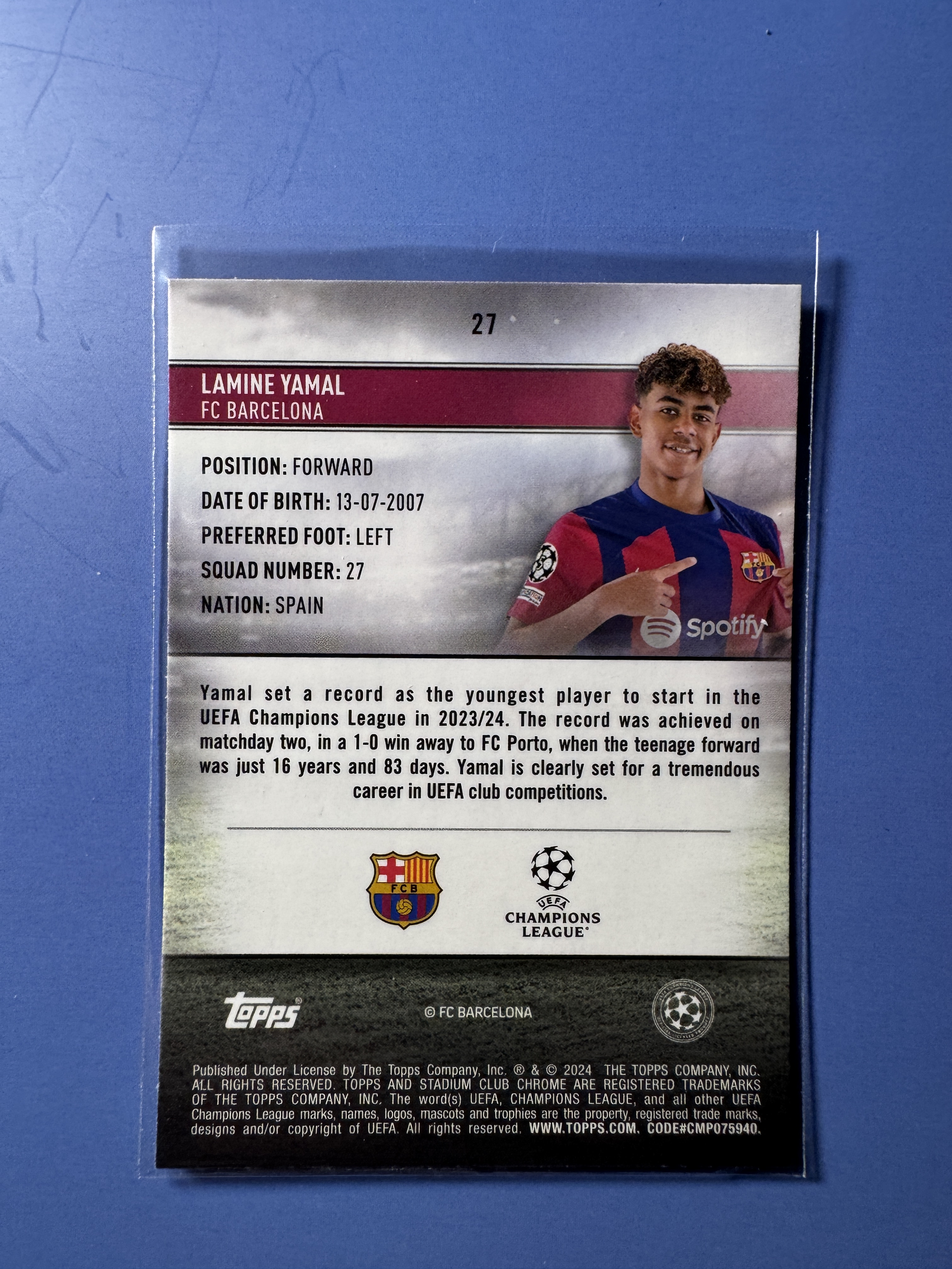 2023-24 Topps Stadium Club Chrome Lamine Yamal RC 西班牙 巴塞罗那 巴萨 新秀 拉明亚马尔 新秀 竞技场 base 卡品如图