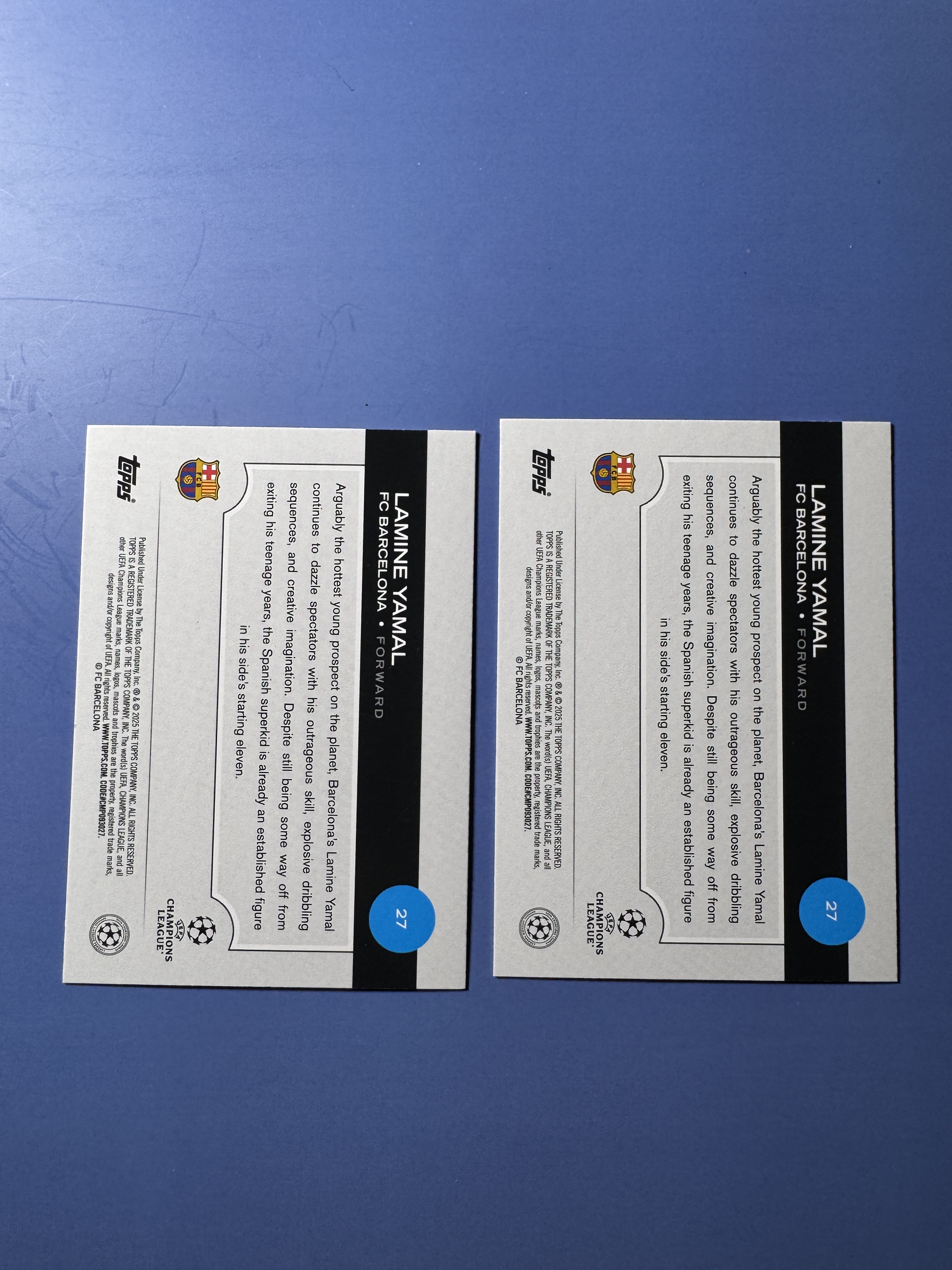 2024-25 Topps ucc Lamine Yamal 亚马尔 巴塞罗那 furure stars 未来之星 两张 base 收藏必备 卡品如图