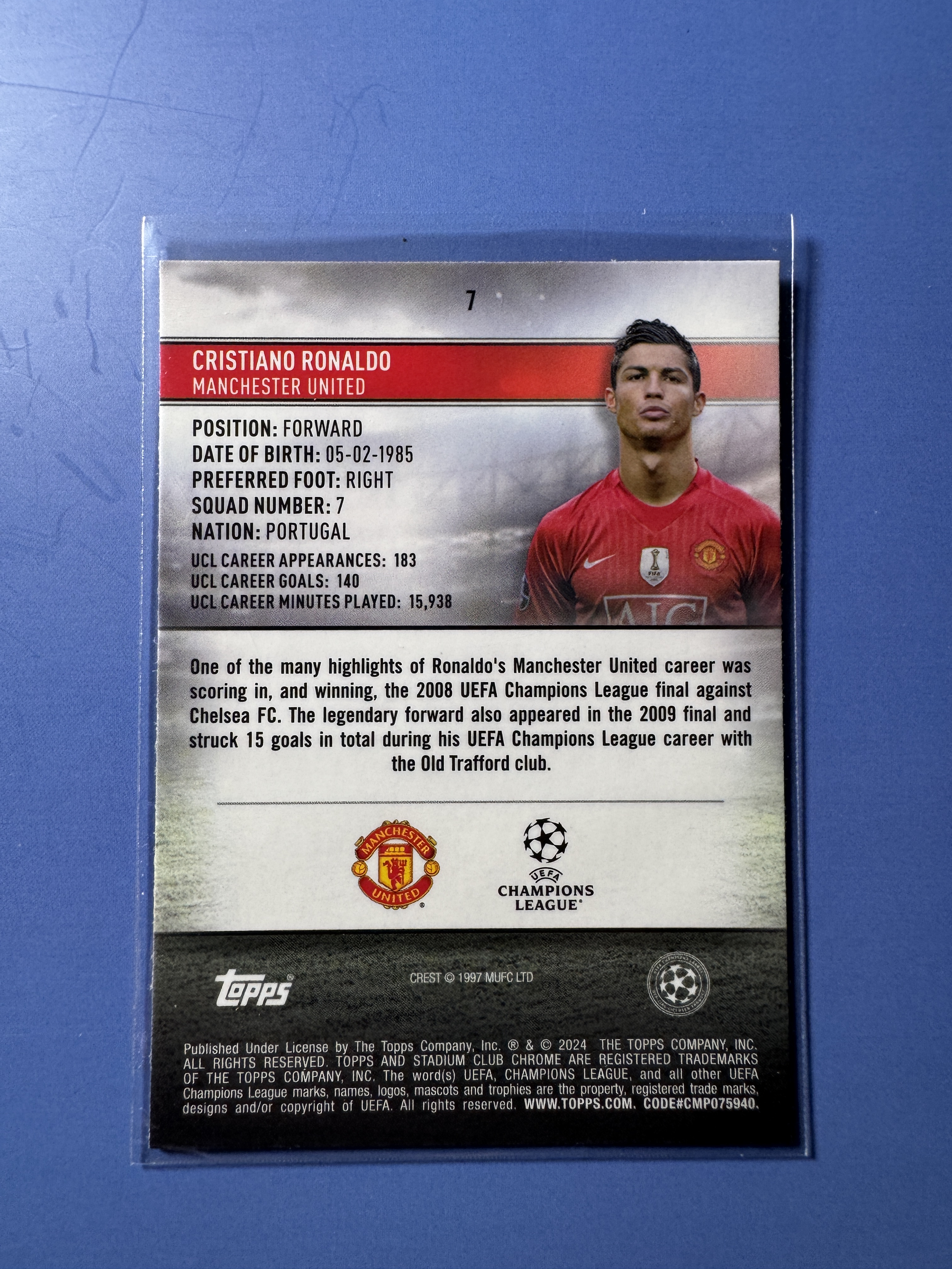 2024 Topps Stadium Club Chrome Cristiano Ronaldo 竞技场 欧冠 C罗 捧杯 base 卡品如图