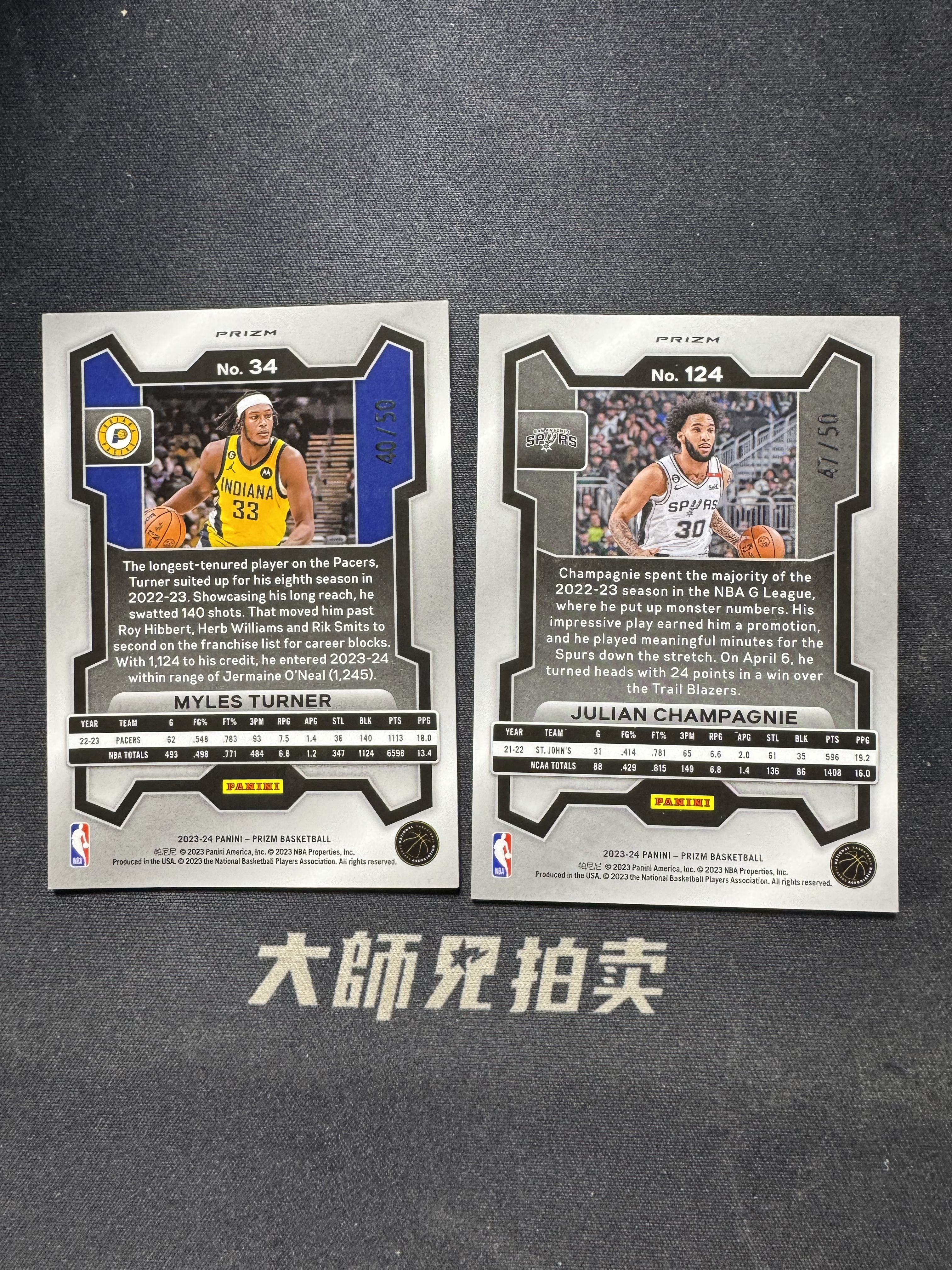 【大师兄拍卖】2023-24 Panini prizm 步行者 特纳 马刺 尚帕尼 pz /50编 粉泡泡折 2张 通行品 -Norman-