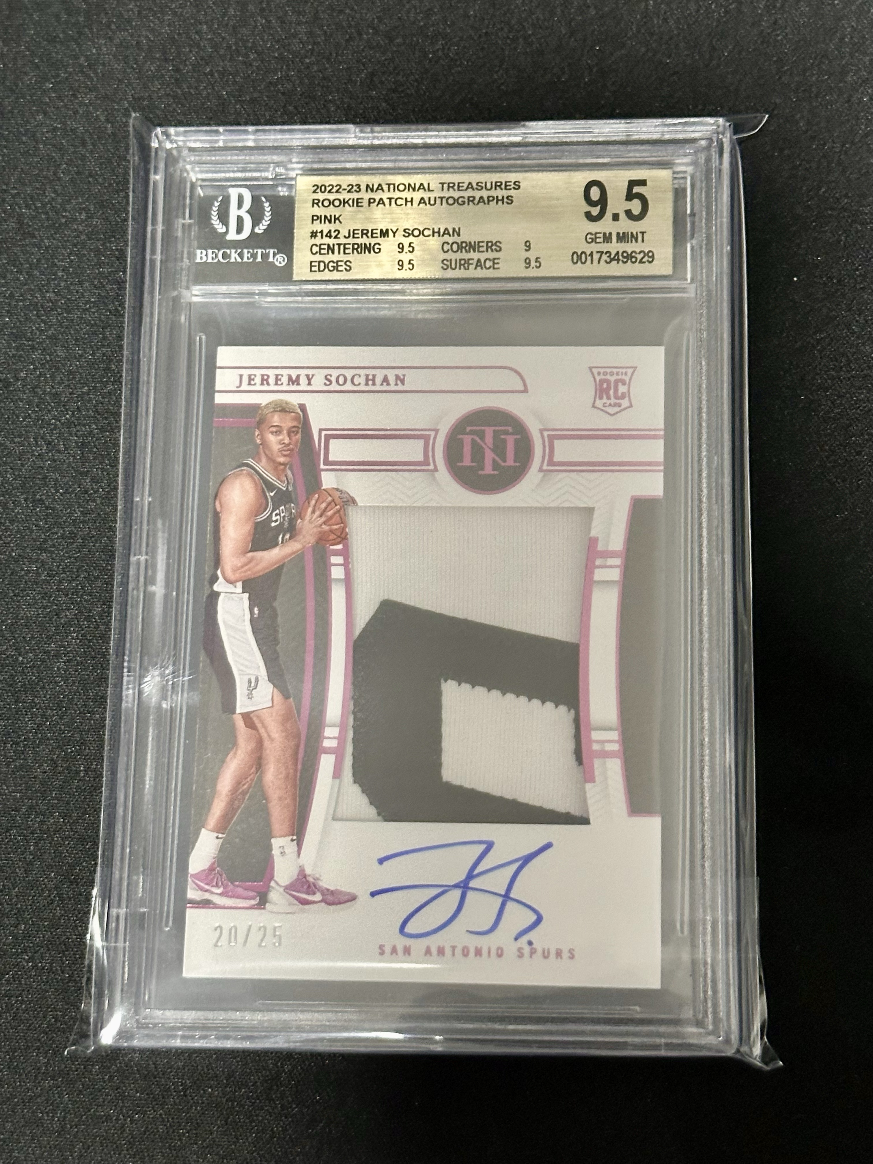 2022-23 Panini National Treasures Jeremy Sochan RC 国宝 马刺 新秀 杰里米索汉 20/25编 RPA 签字 卡签 BGS金标9.5分 文班亚马队友