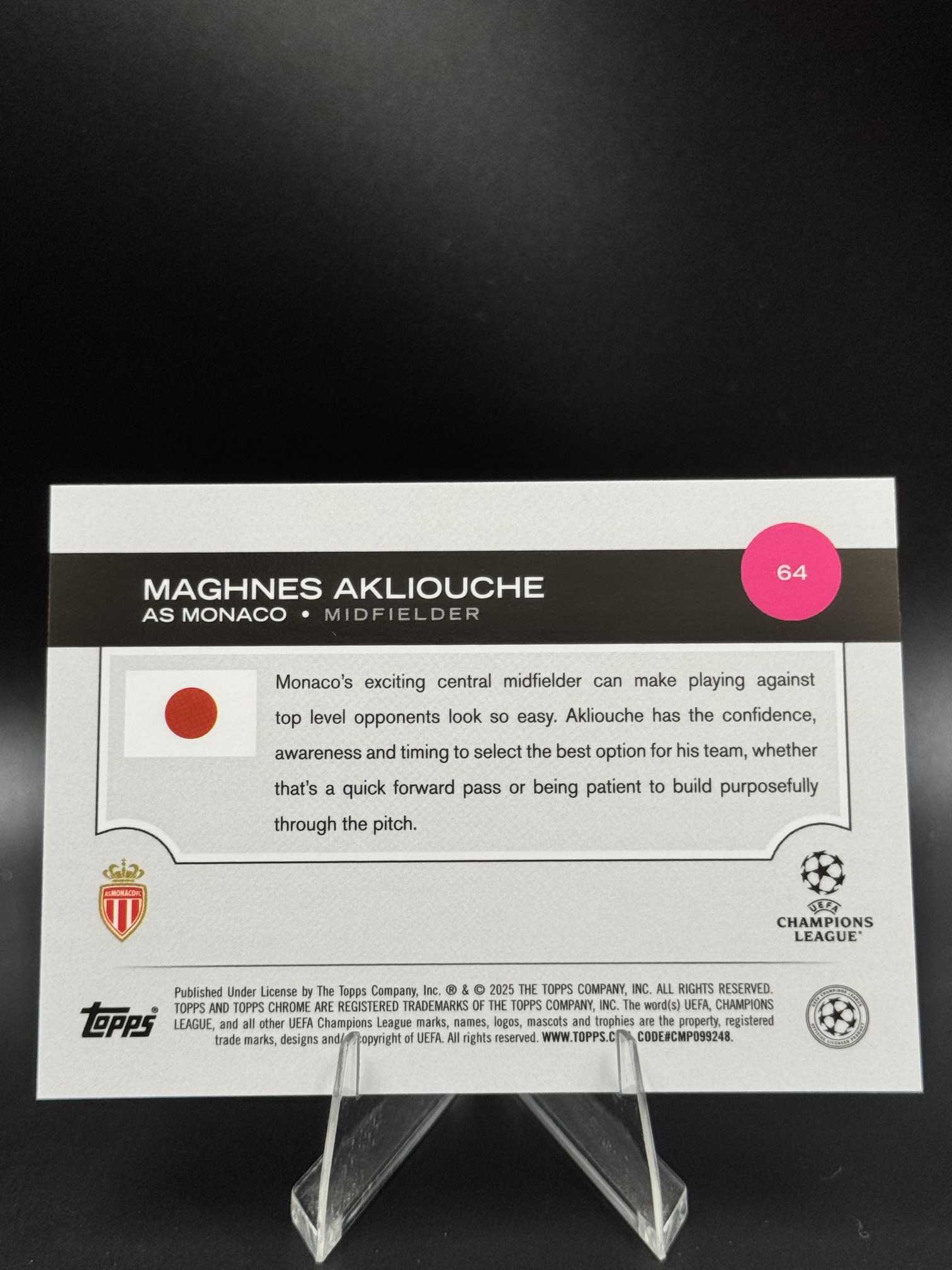 2025 Topps Chrome Maghnes Akliouche 【小桃气拍卖】欧战 TC 日版 马格纳 阿克里乔 /75编 蓝mojo折 折射 摩纳哥 卡品如图 V685