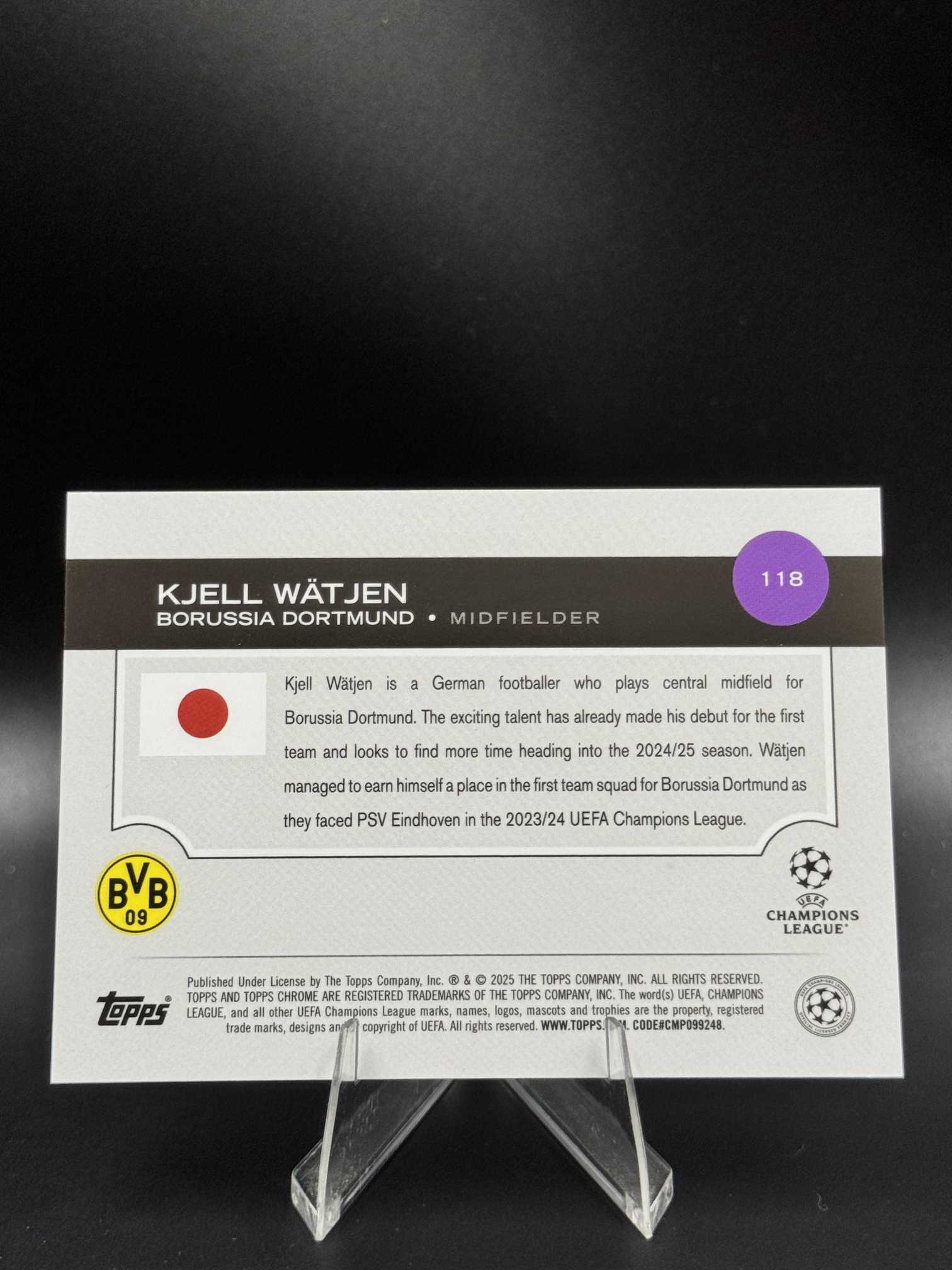 2025 Topps Chrome Kjell Watjen 【小桃气拍卖】欧战 TC 日版 魏特延 新秀 RC /125编 粉mojo折 折射 多特蒙德 卡品如图 V685