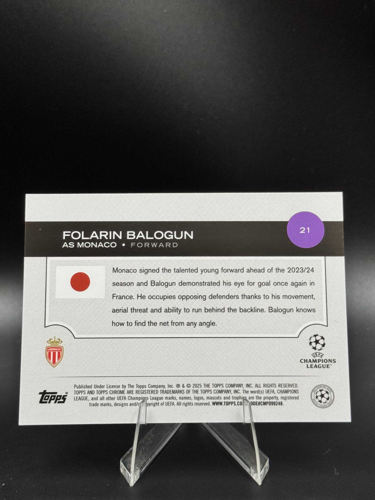 2025 Topps Chrome Folarin Balogun 【小桃气拍卖】欧战 TC 日版 巴洛贡 /150编 黄mojo折 折射 摩纳哥 卡品如图 V685