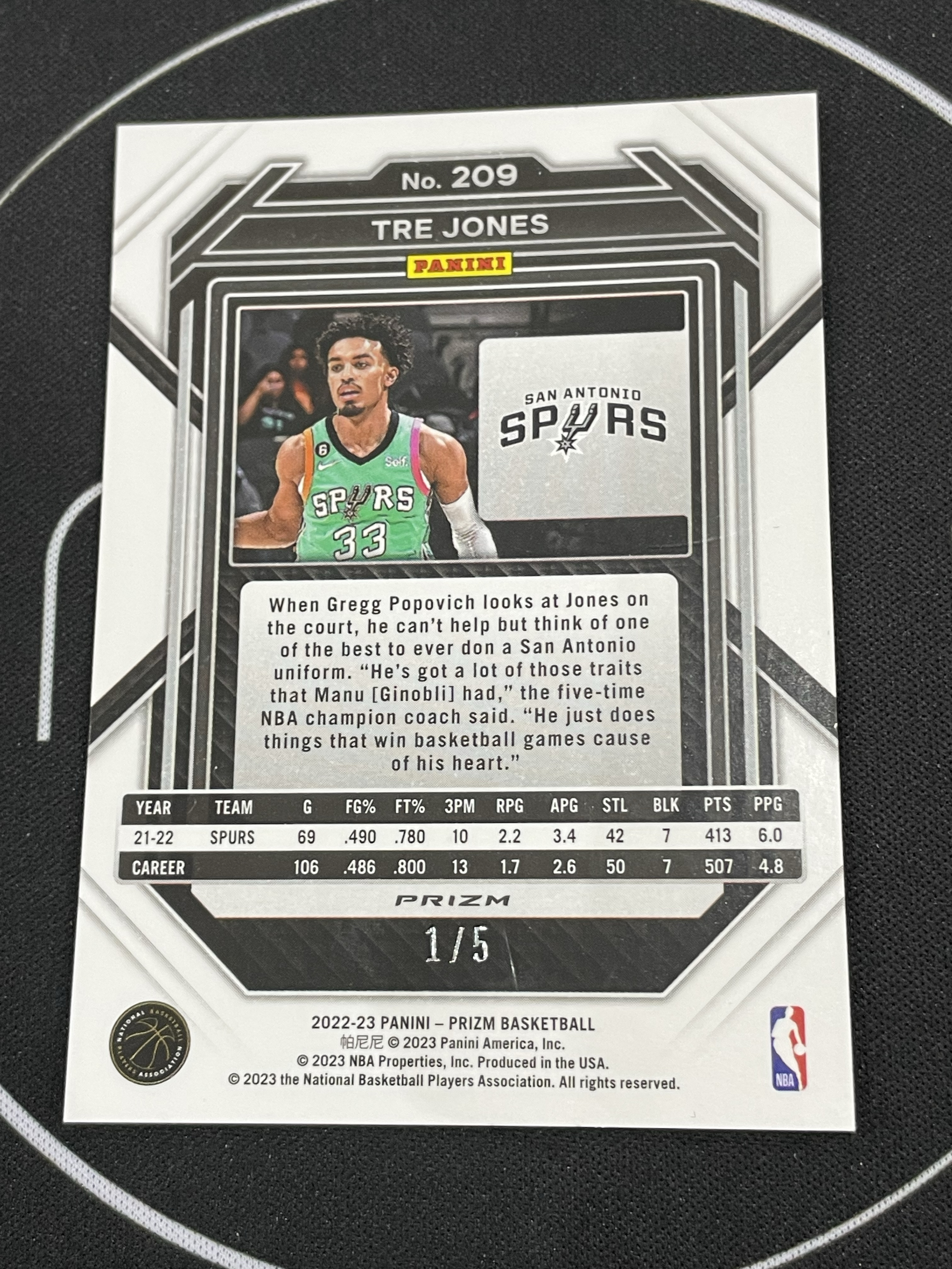 2022-23 Panini Prizm Tre Jones 【小哈拍卖-Z08】特雷琼斯 1/5编 首编 绿泡泡折 base 投资收藏 瑕疵如图