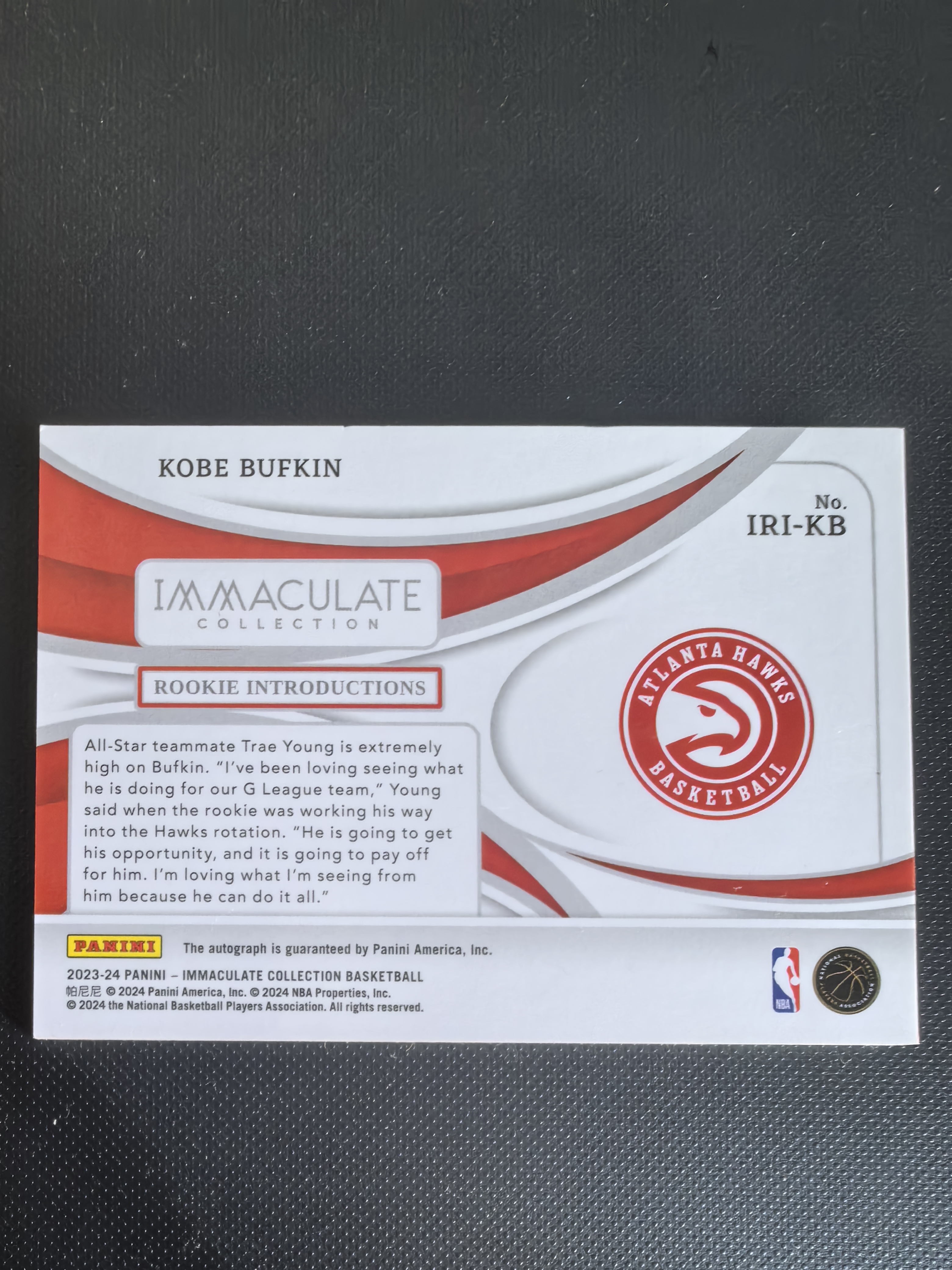 2023-24 Panini Immaculate Kobe Bufkin RC 老鹰新秀 科比 巴夫金 imm系列 介绍签 33/99编 墨迹湛蓝 卡品如图