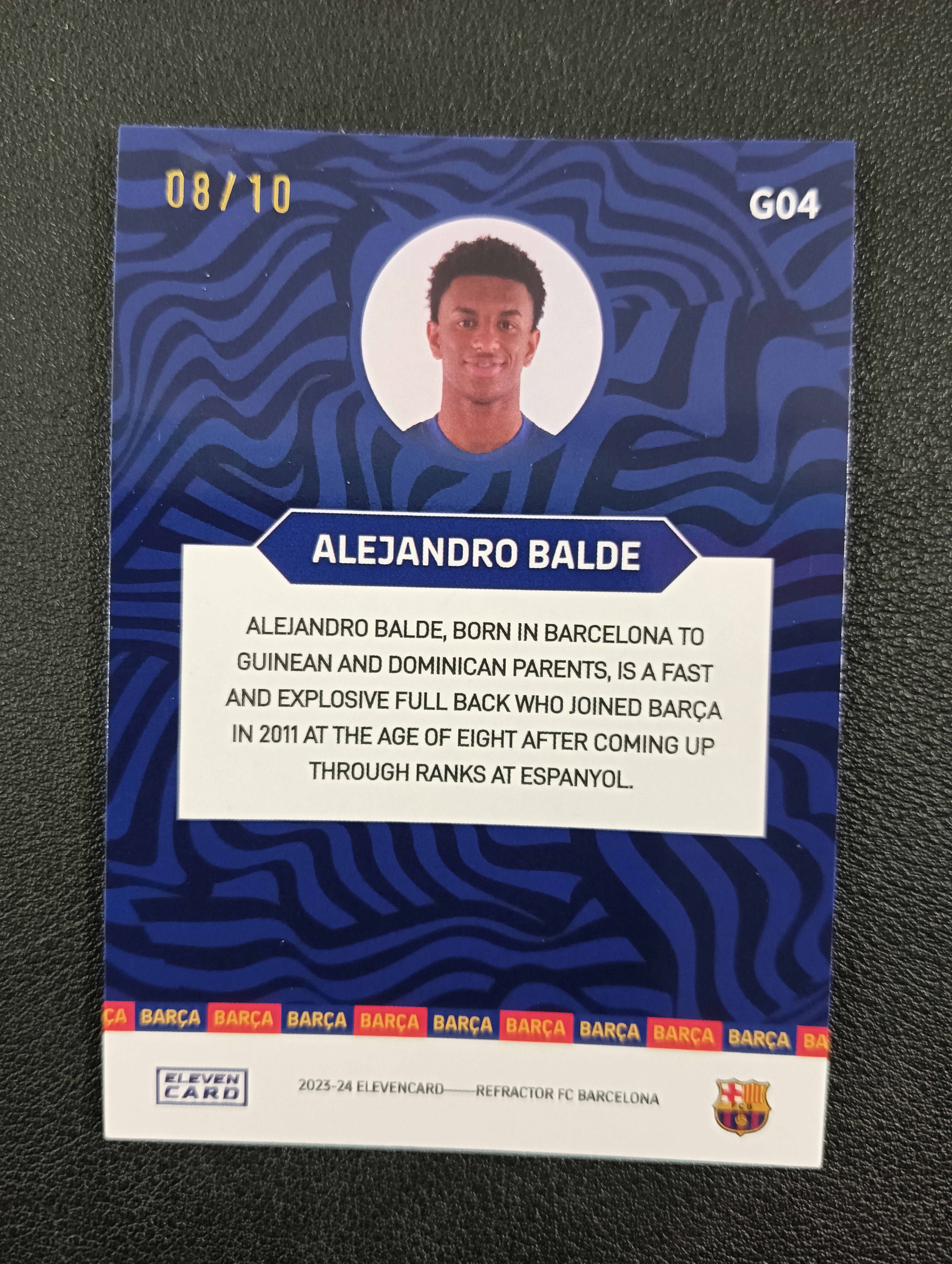 2023-24 ELEVENCARD FC BARCELONA ALEJANDRO BALDE 【卡仓-XIU080】 巴萨队盒 巴塞罗那 巴尔德 金折 BASE /10编 低编 NO.G04