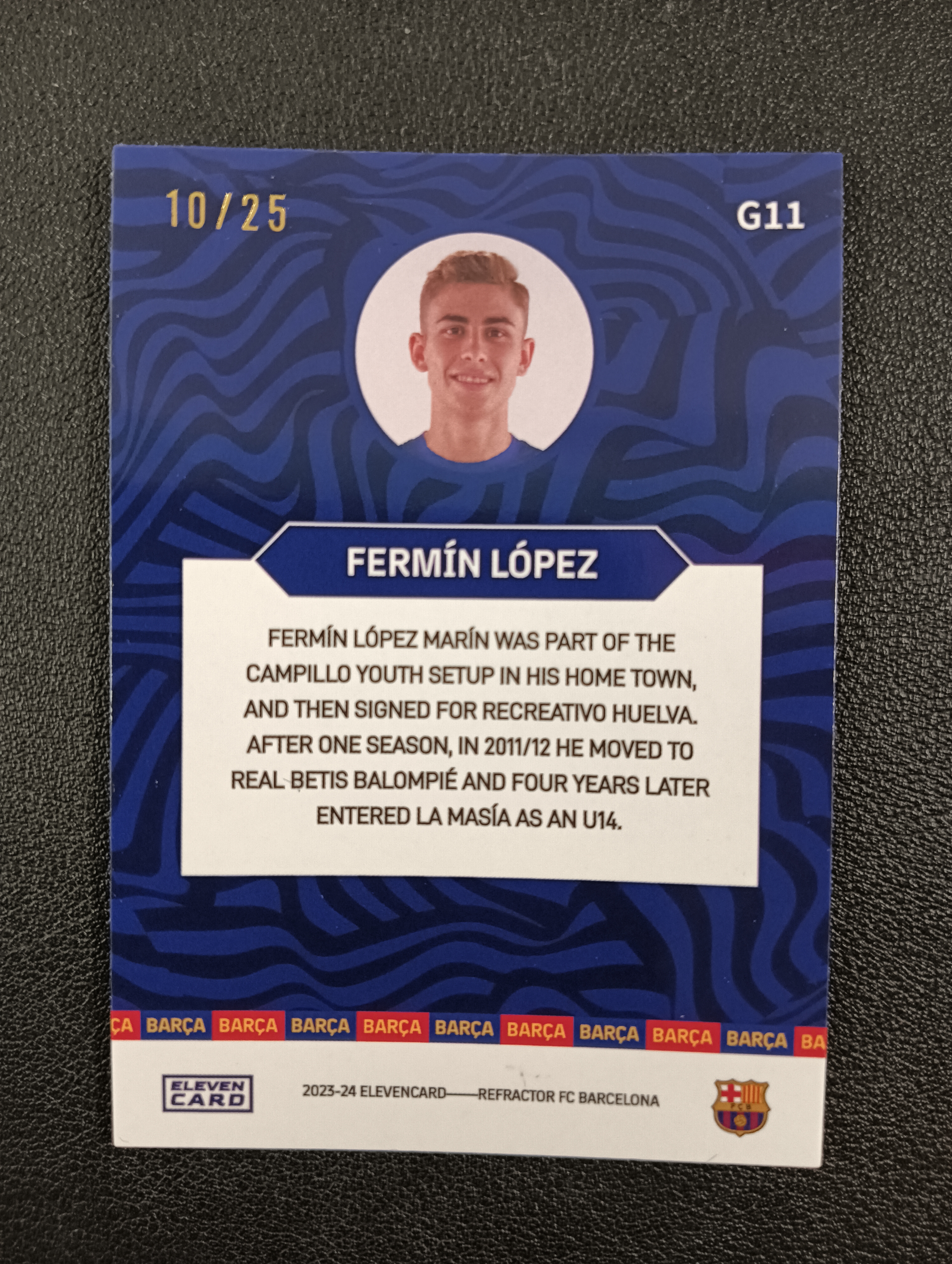 2023-24 ELEVENCARD FC BARCELONA FERMIN LOPEZ RC 【卡仓-XIU080】 巴萨队盒 巴塞罗那 费尔明洛佩兹 橙折 新秀BASE /25编 低编NO.G11