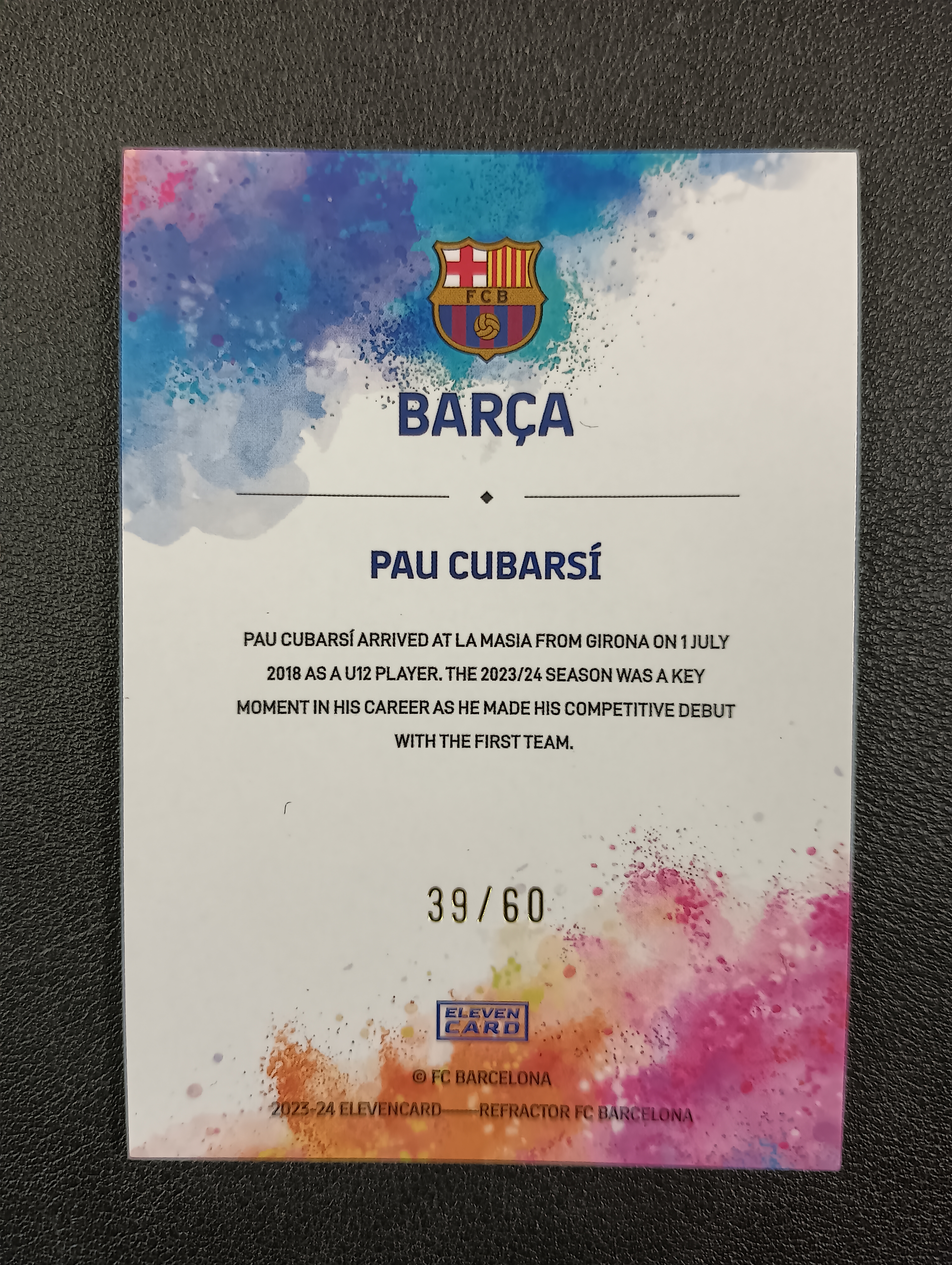 2023-24 ELEVENCARD FC BARCELONA PAU CUBARSI RC 【卡仓-XIU080】 巴萨队盒 巴塞罗那 保罗库巴奇 折射 新秀泼墨特卡 /60编
