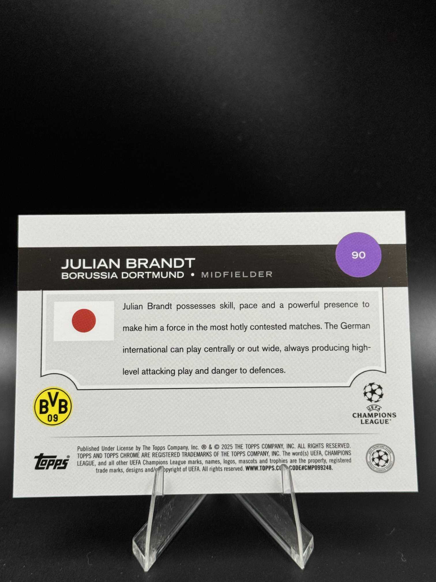 2025 Topps Chrome Julian Brandt 【小桃气拍卖】欧战 TC 日版 朱利安 胡利安 布兰特 150/150编 尾编 黄mojo折 折射 多特蒙德 卡品如图 V357