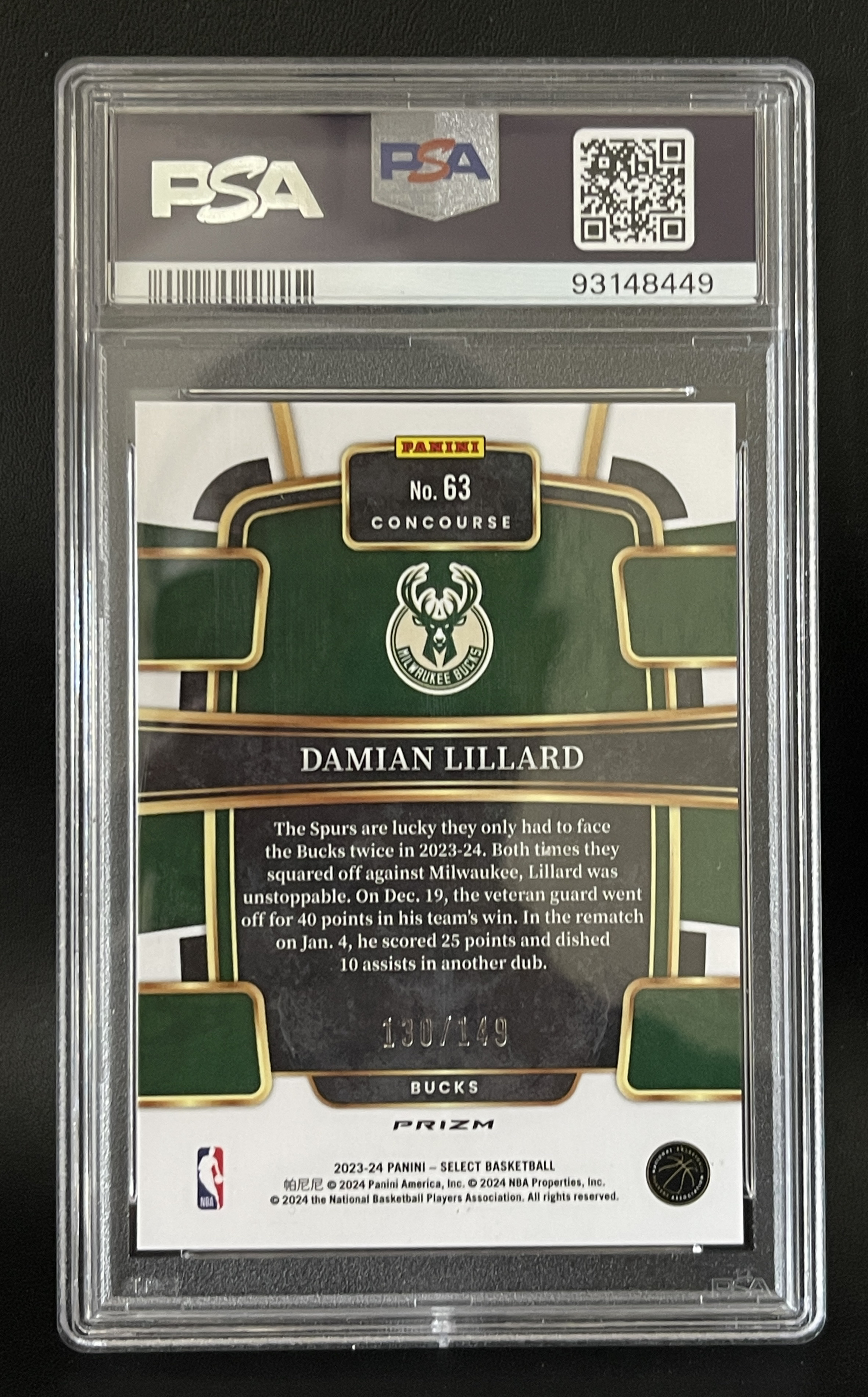 利拉德 利指导 2023-24 Panini Select 130/149编 白折 折射漂亮 PSA10 满分评级 POP3 开拓者 雄鹿 全明星 三分大赛冠军 利指导 75大巨星 值得收藏
