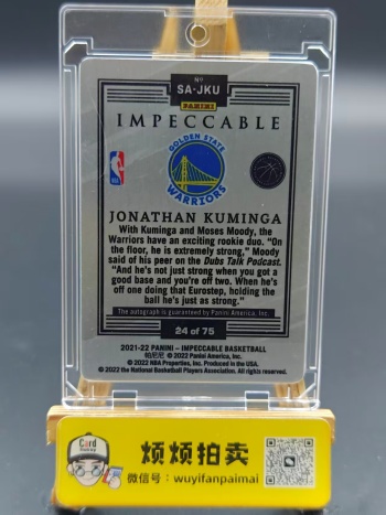 2.参拍:卡品墨迹如图所示(厚卡异形卡等都有正常白边白角,部分系列会有特殊瑕疵),请认真看图后再谨慎出价。不接受任何艺术家买卡,如拍到卡后有任何艺术家行为(包括但不限于在通行卡品里挑瑕疵索要赔偿或退卡等)一律拉黑投诉处理。所卖卡未经描述均为通行品,可能会有细微瑕疵;打包标小卡可能会有不同程度的瑕疵,不保障卡品;评级卡壳和原封砖的磨损不包含在卡品范围内;多张上拍卡品通行的同款卡片随机发货。竞拍前可以私聊要细节图,成交后再以有瑕疵、勿拍等理由退卡的一律拒绝,介意者请勿参拍!参拍即视为已读同意!