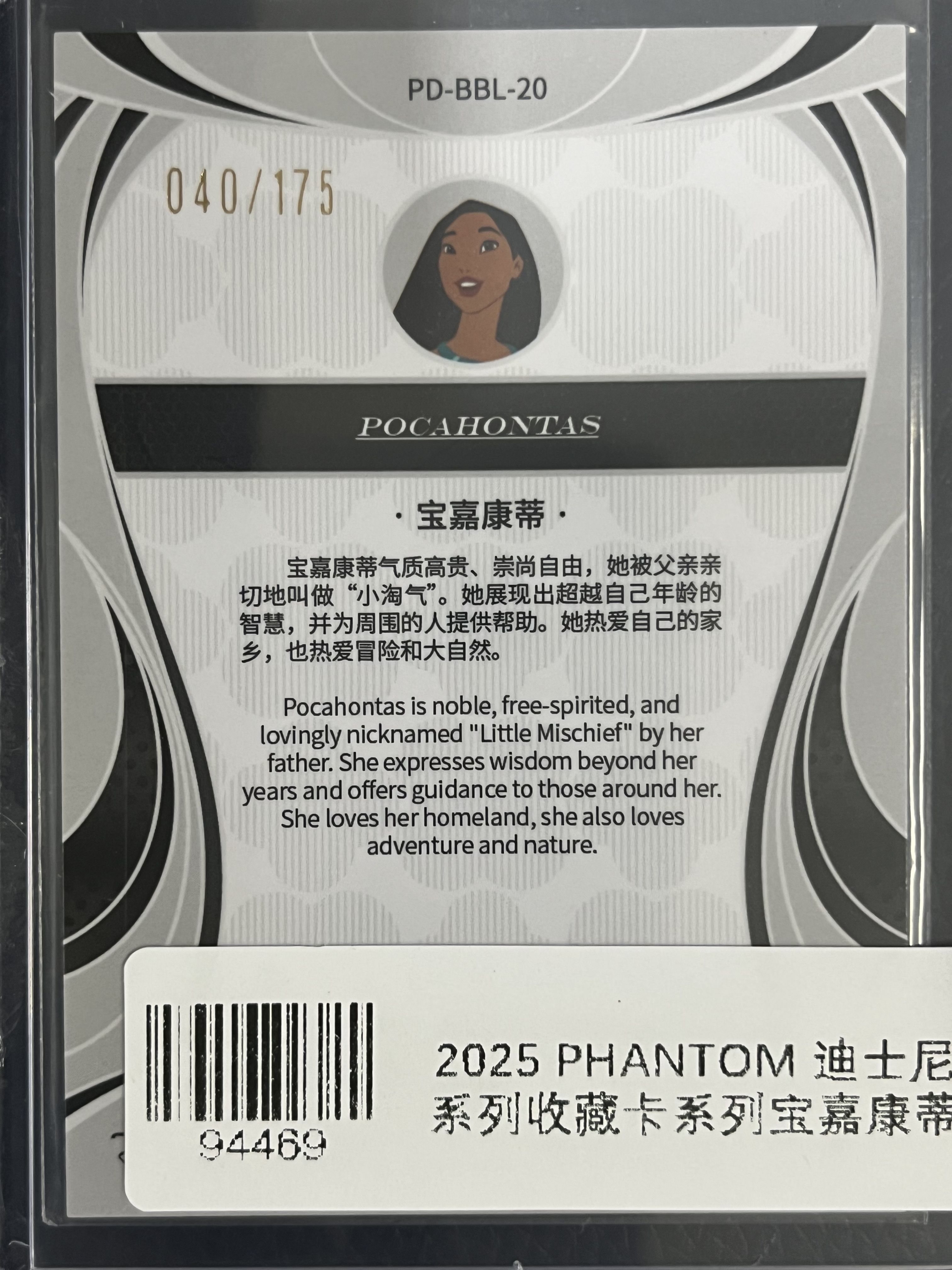 卡卡沃 2025 KAKAWOW PHANTOM 迪士尼系列收藏卡 基础卡-蓝 陆丫(9C)40/175编 卡号20 宝嘉康蒂 Pocahontas