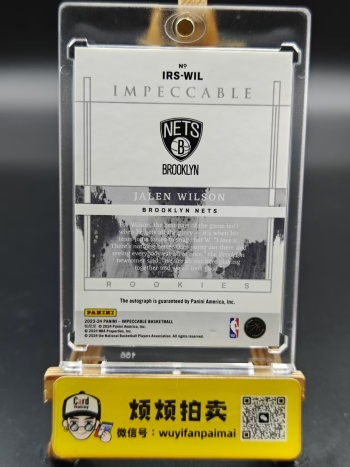 2.参拍:卡品墨迹如图所示(厚卡异形卡等都有正常白边白角,部分系列会有特殊瑕疵),请认真看图后再谨慎出价。不接受任何艺术家买卡,如拍到卡后有任何艺术家行为(包括但不限于在通行卡品里挑瑕疵索要赔偿或退卡等)一律拉黑投诉处理。所卖卡未经描述均为通行品,可能会有细微瑕疵;打包标小卡可能会有不同程度的瑕疵,不保障卡品;评级卡壳和原封砖的磨损不包含在卡品范围内;多张上拍卡品通行的同款卡片随机发货。竞拍前可以私聊要细节图,成交后再以有瑕疵、勿拍等理由退卡的一律拒绝,介意者请勿参拍!参拍即视为已读同意!