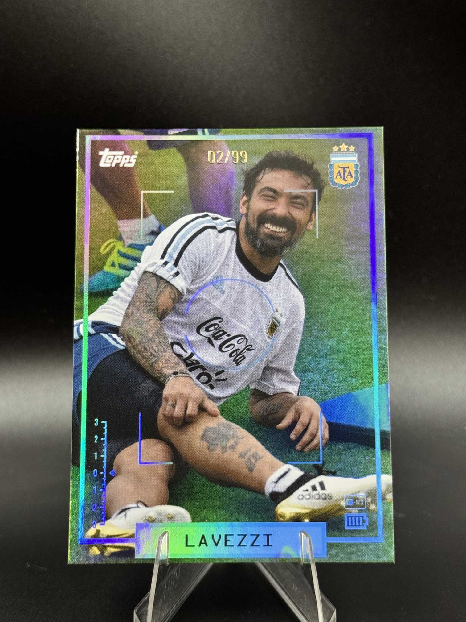 2025 Topps Focus Ezequiel Lavezzi 【小桃气拍卖】阿根廷聚焦队盒 拉维奇 /99编 天蓝彩虹折 折射 卡品如图 V525