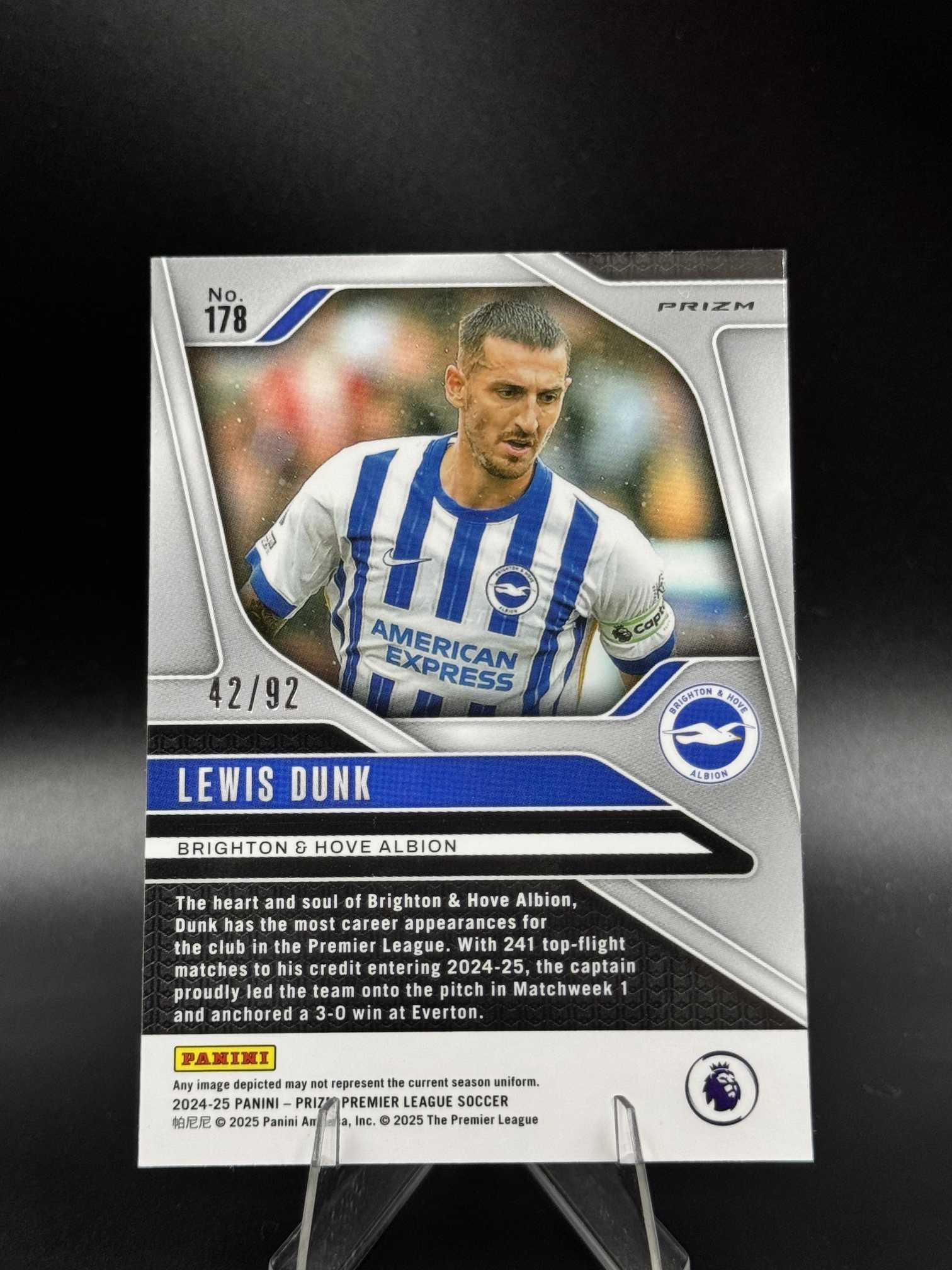 2024-25 Panini Prizm Lewis Dunk 【小桃气拍卖】英超PZ 邓克 /92编 紫白条纹折 折射 布莱顿 卡品如图 V525
