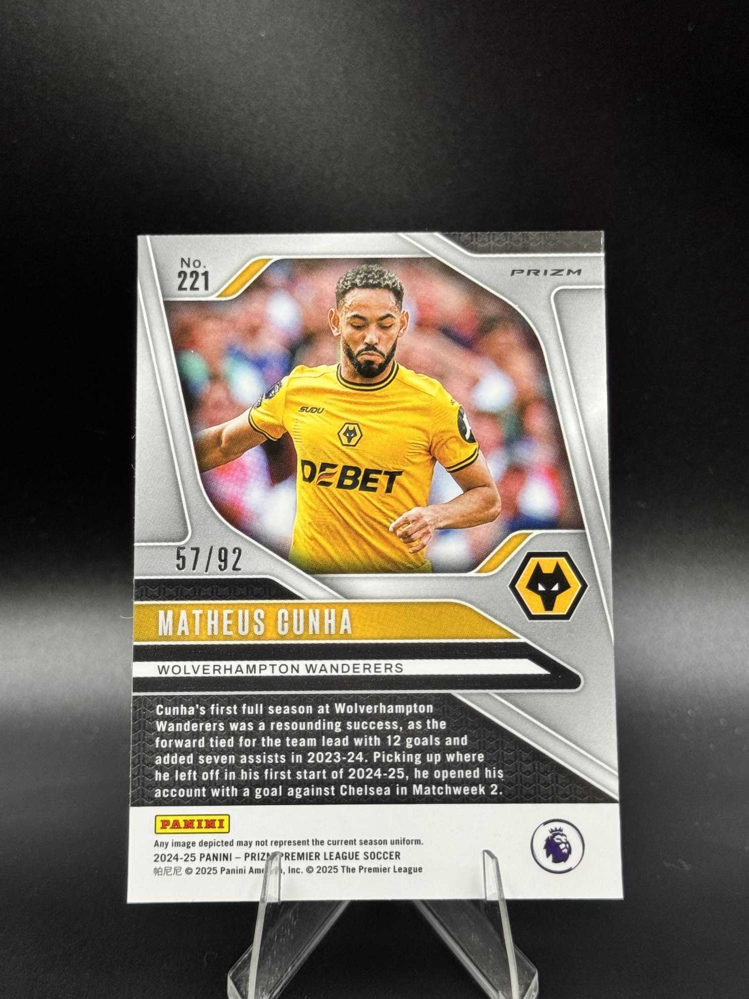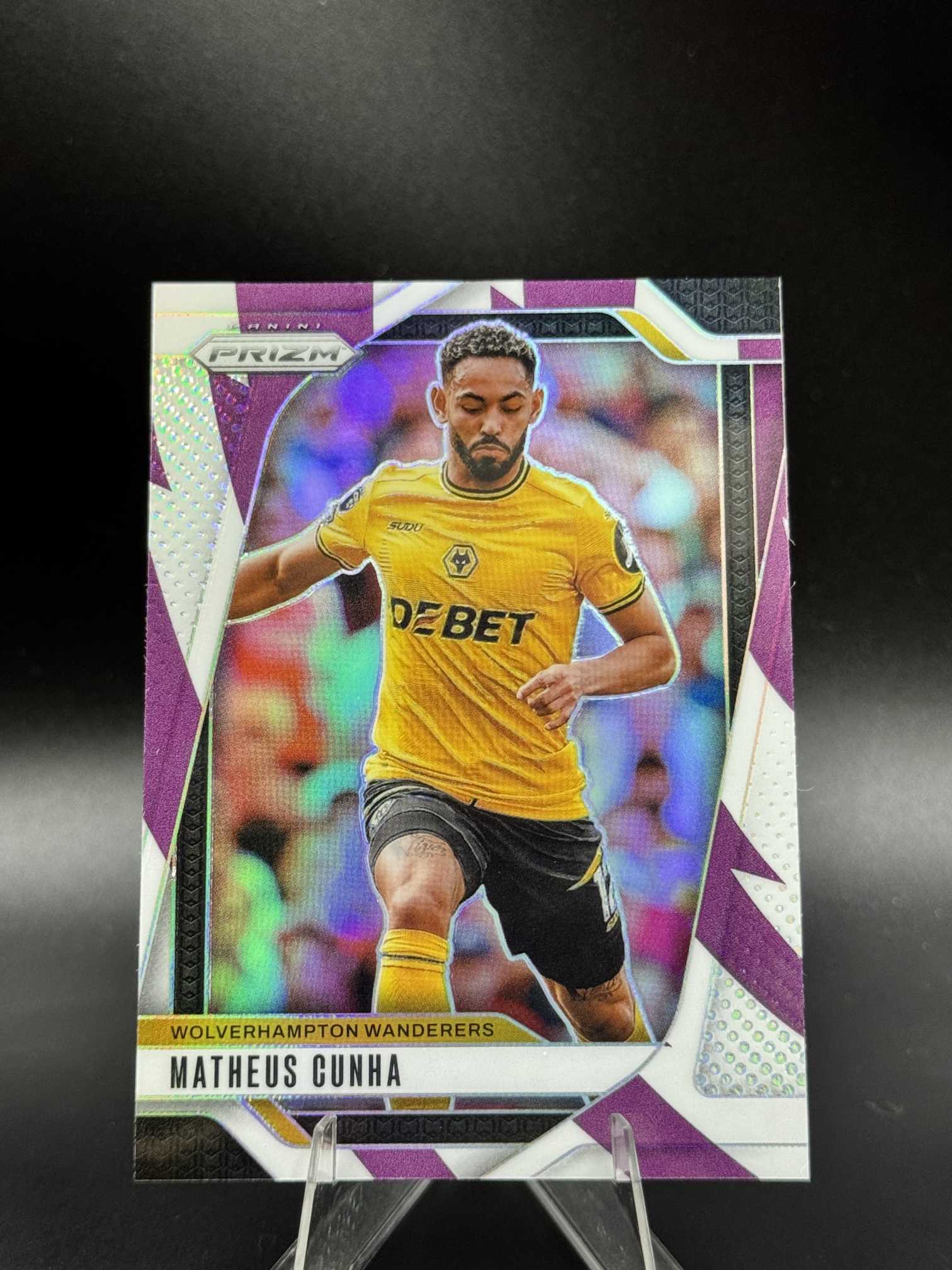 2024-25 Panini Prizm Matheus Cunha 【小桃气拍卖】英超PZ 马特乌斯 库尼亚 /92编 紫白条纹折 折射 狼队 卡品如图 V525
