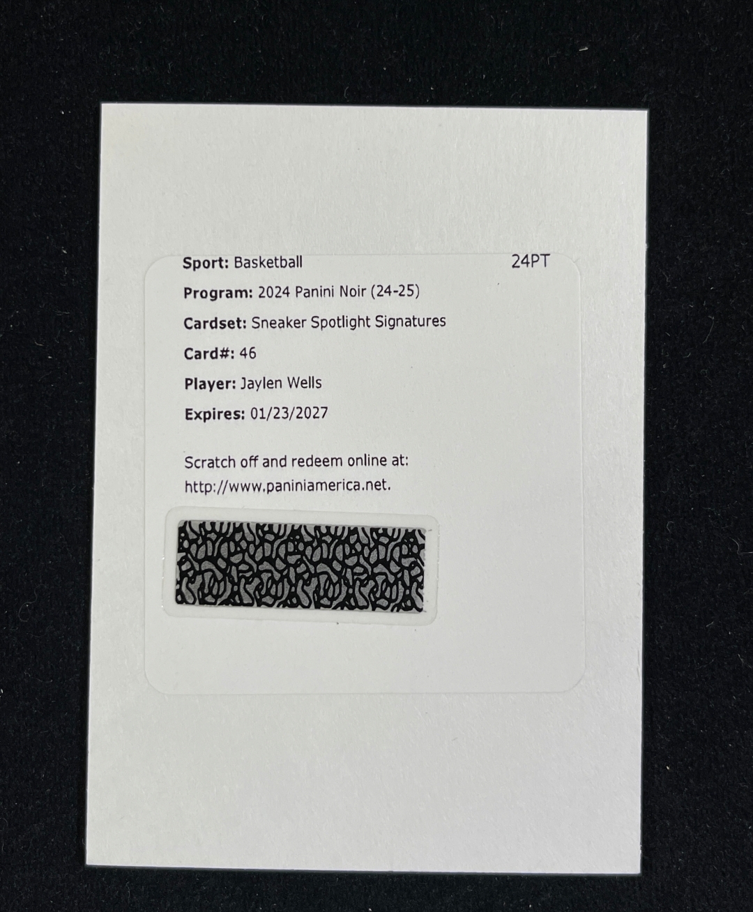2024-25 Panini Noir Jaylen Wells RC 灰熊 杰伦威尔斯 新秀 镜面 Sneaker Spotlight 鞋灯 聚光灯 签字卡签 99编 交换板 只发货「老夫子」做梦