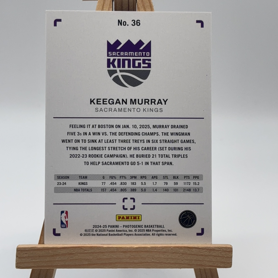 2024-25 Panini PaniniPhotoGenicNBA Keegan Murray 【趣收藏球星卡】上镜 折射 烟花折 基根 穆雷 1/5编 低编 湖水蓝 卡品如图/rt10