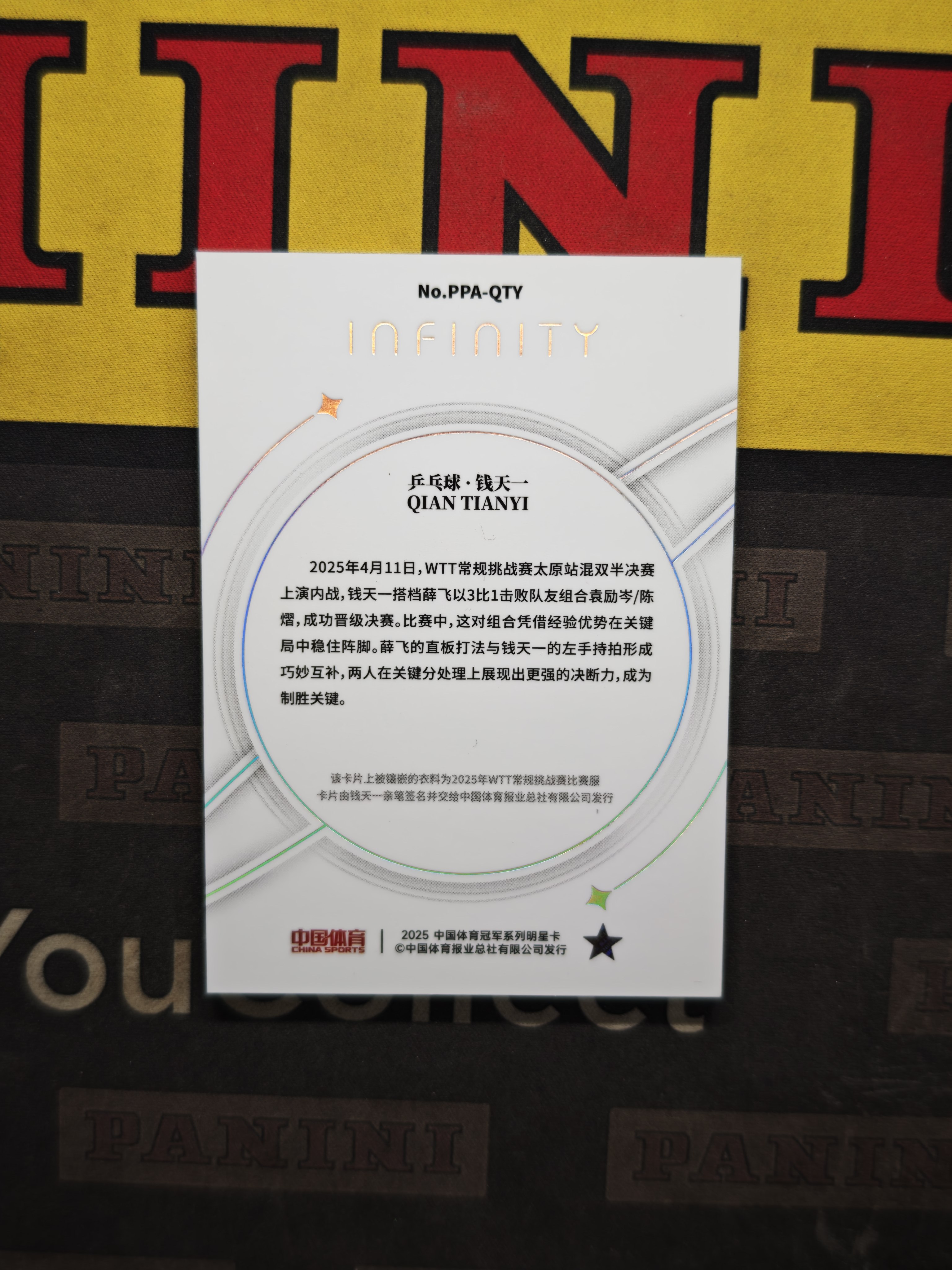 2025 奇卡 QICA 无限 冠军 中国体育 乒乓球 钱天一 尾编 镭射银 /25编 行星签字 卡签 实物签字卡 元年 奥运会冠军 世界冠军【CUN拍卖-1%1115】