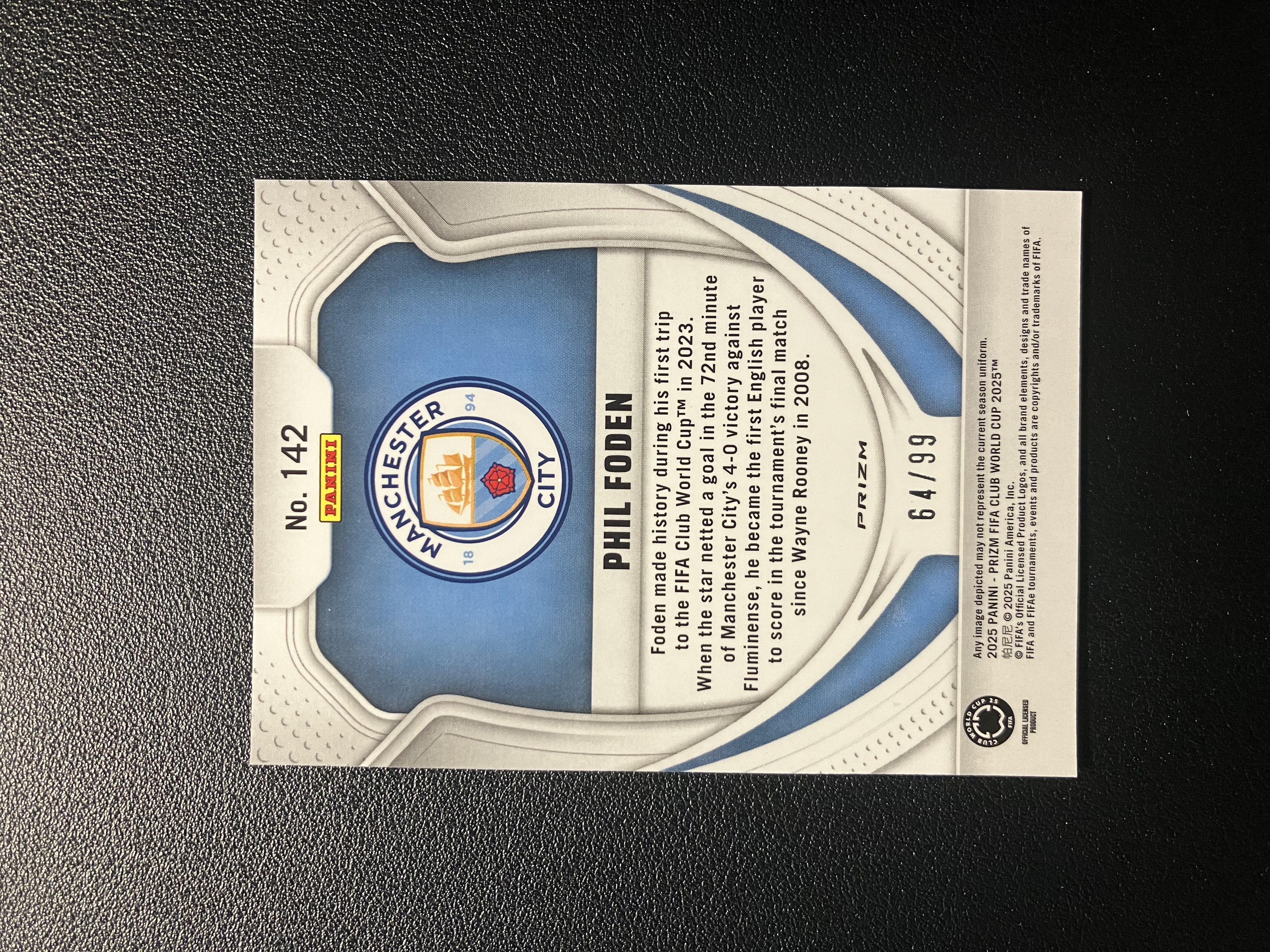 2024-25 Panini Prizm Phil Foden 世俱杯PZ系列 菲尔-福登 64/99编 青折 曼城 英格兰 曼城太子 卡品如图 A115