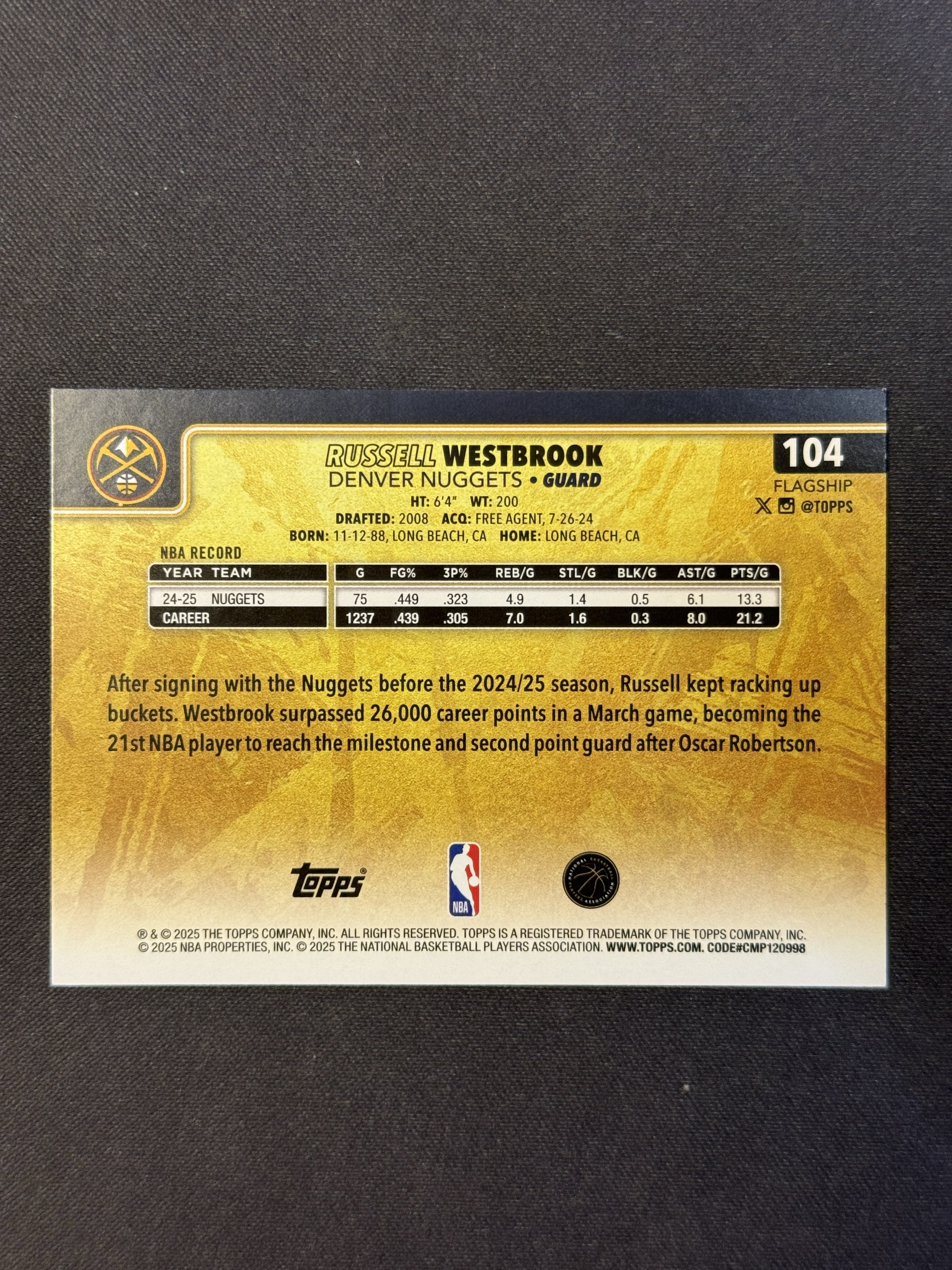 2025-26 Topps Flagship Jalen Brunson 元年 掘金名宿 威斯布鲁克 威少 变化版 金标 金背 超大比例SSP 卡品如图 收藏必备 鹿