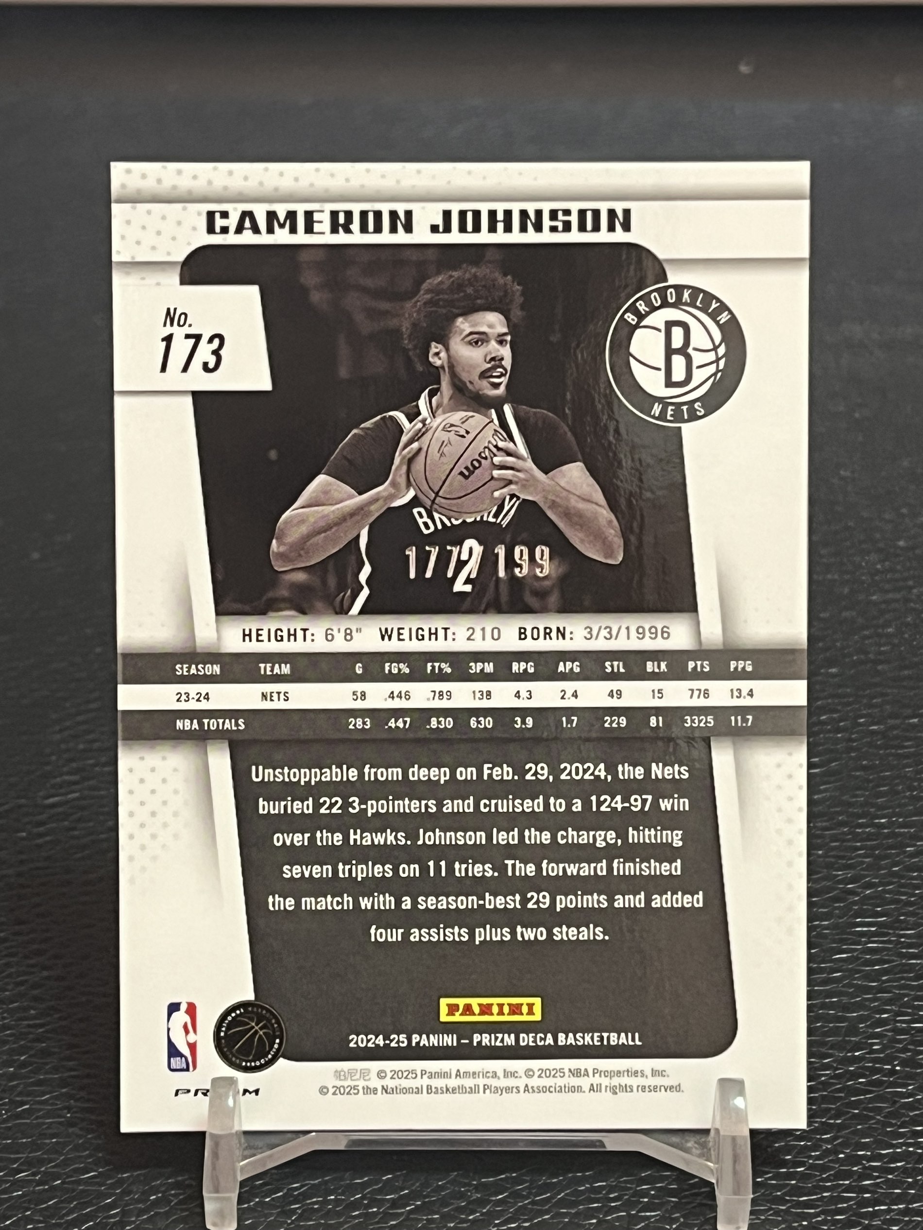 【浩行拍卖 截标预付82%】2024-25 panini prizm deca cameron johnson 元年复刻 篮网 卡梅伦 卡梅隆 约翰逊 红折 折射 177/199编 专收必备「功法」1111F01祺