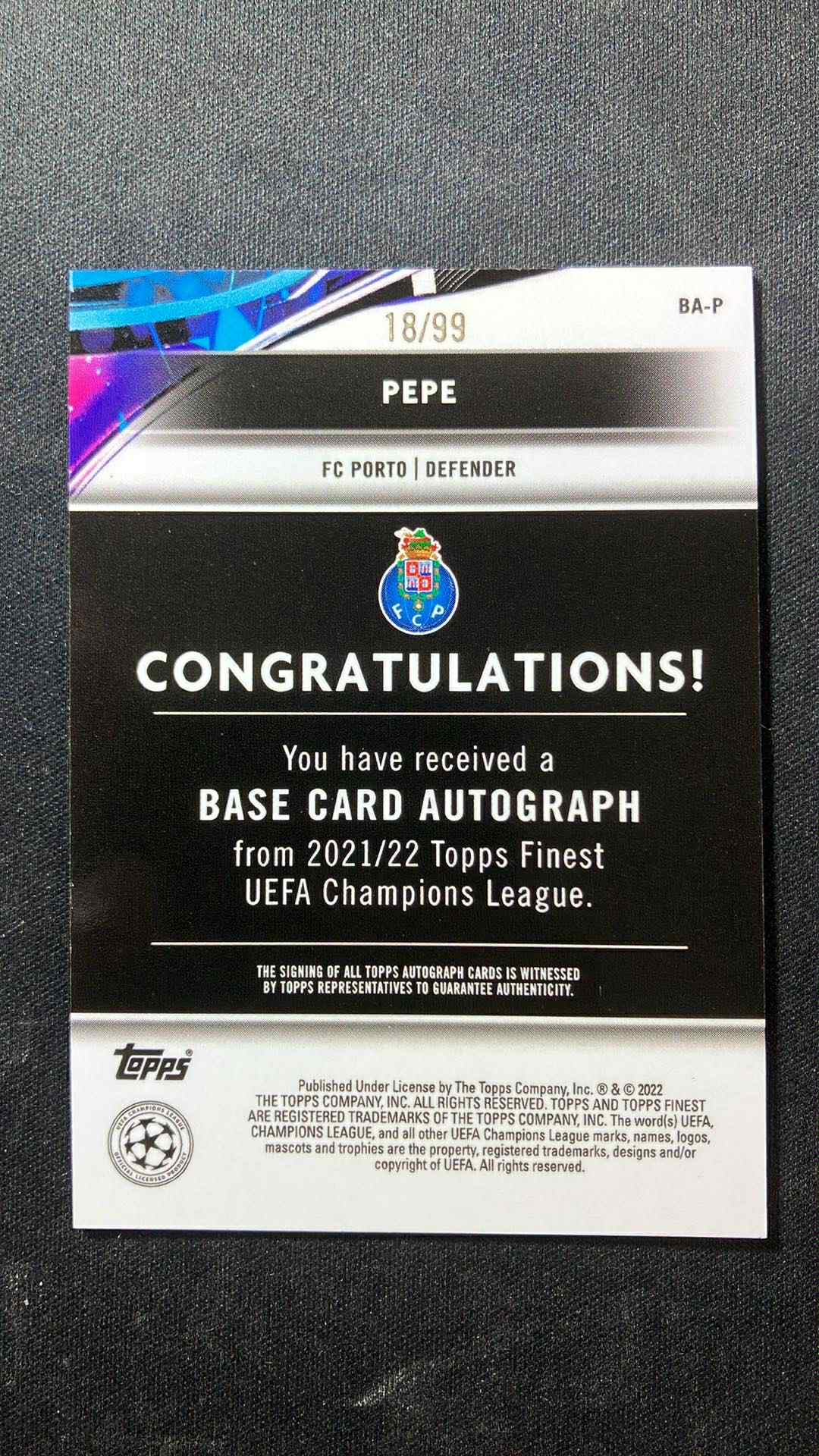 本卡社另有提供 1、【卡淘代拍】需要卡淘代拍业务的老板,可私聊沟通 2、【eBay代购】海外eBay代购 具体费用情况可以私聊沟通3、【PSA服務(香港)】具体费用情况可以私聊沟通 参与竞拍前请仔细阅读以下规则,成交均视为同意以下规则: 1.关于品相:卡品相如图所示,如未特别指出说明属通行品或以上。一般镜面卡如prizm optic 等系列薄卡的小划痕和印刷线属于正常品相(瑕疵均在可接受范围内),木盒,国宝,IMM,noir,小书,金书系列都有正常白边白角,不属于残卡但也不保证所有卡片都具备金标品相,艺术家 品控勿扰。评级卡壳和原封砖的磨损不包含在卡品范围内,对于卡品细节有任何疑问请于结拍前和我们沟通,参拍即视为对卡品认可。 2.付款:竞拍成功后请于【卡淘新规3天内付款】,超时不付款系统自动关单封号!多笔订单请待第二天合并后再支付,买卡皆为自愿出价,请慎重考虑后看准再出价,我们不接受任何理由的取消交易!所有拍品不支持直接上拍等其他后续服务。 3.发货:本卡社会安排国内快递发货, 如需顺丰出货, 只能安排顺丰到付,如介意勿拍!(付款后一般7-14天内发货,卡在香港) 4.理赔:为安全起见,金额较大的卡片建议私聊改保价到付。快递造成的卡片丢失或损坏我们恕不赔偿。5. 10块以下的卡片不一定保卡夹, 请注意!!