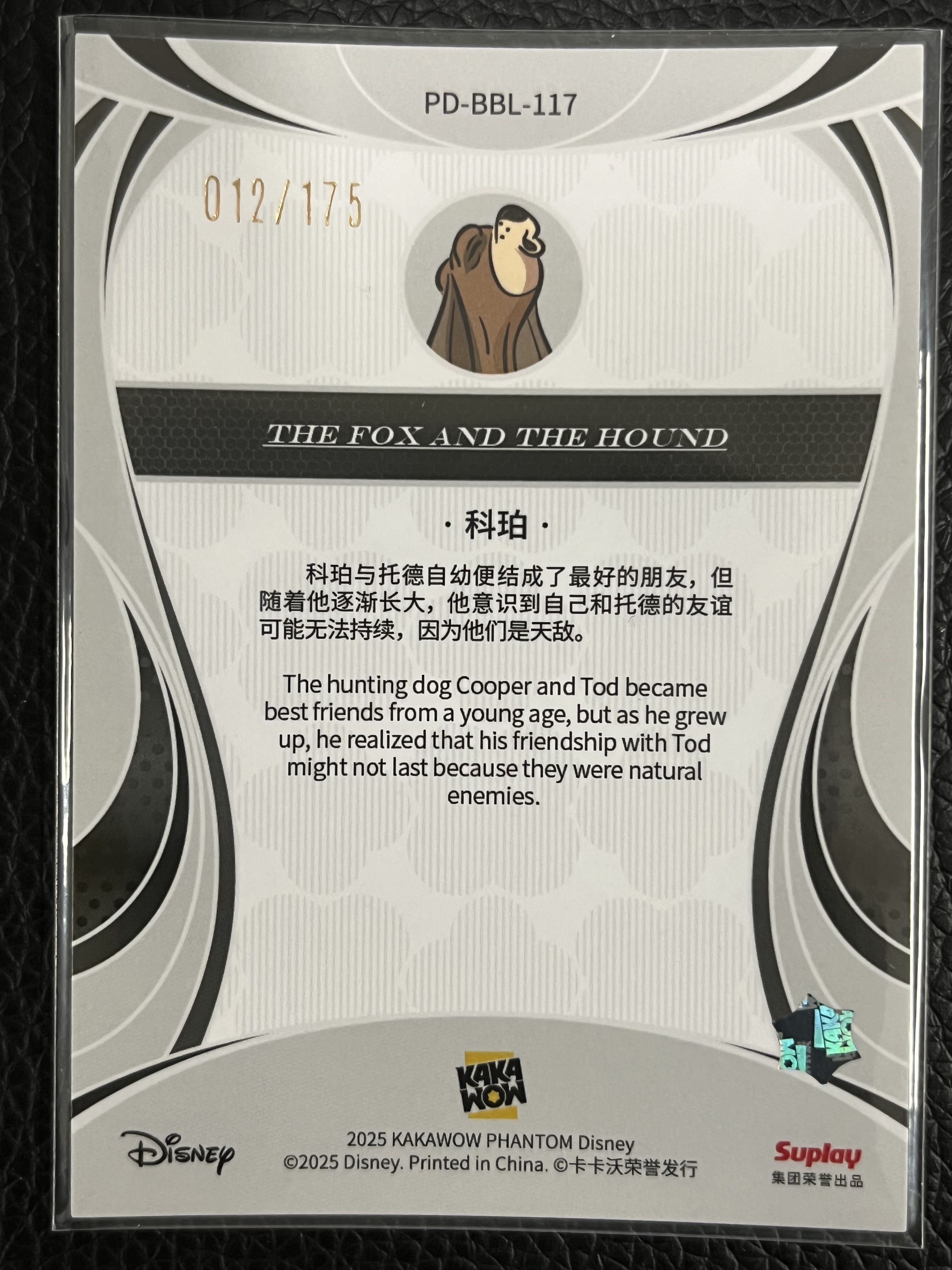 卡卡沃 2025 KAKAWOW PHANTOM 迪士尼系列收藏卡 基础卡-蓝 西GXX(11A)12/175编 卡号117 科珀 Copper