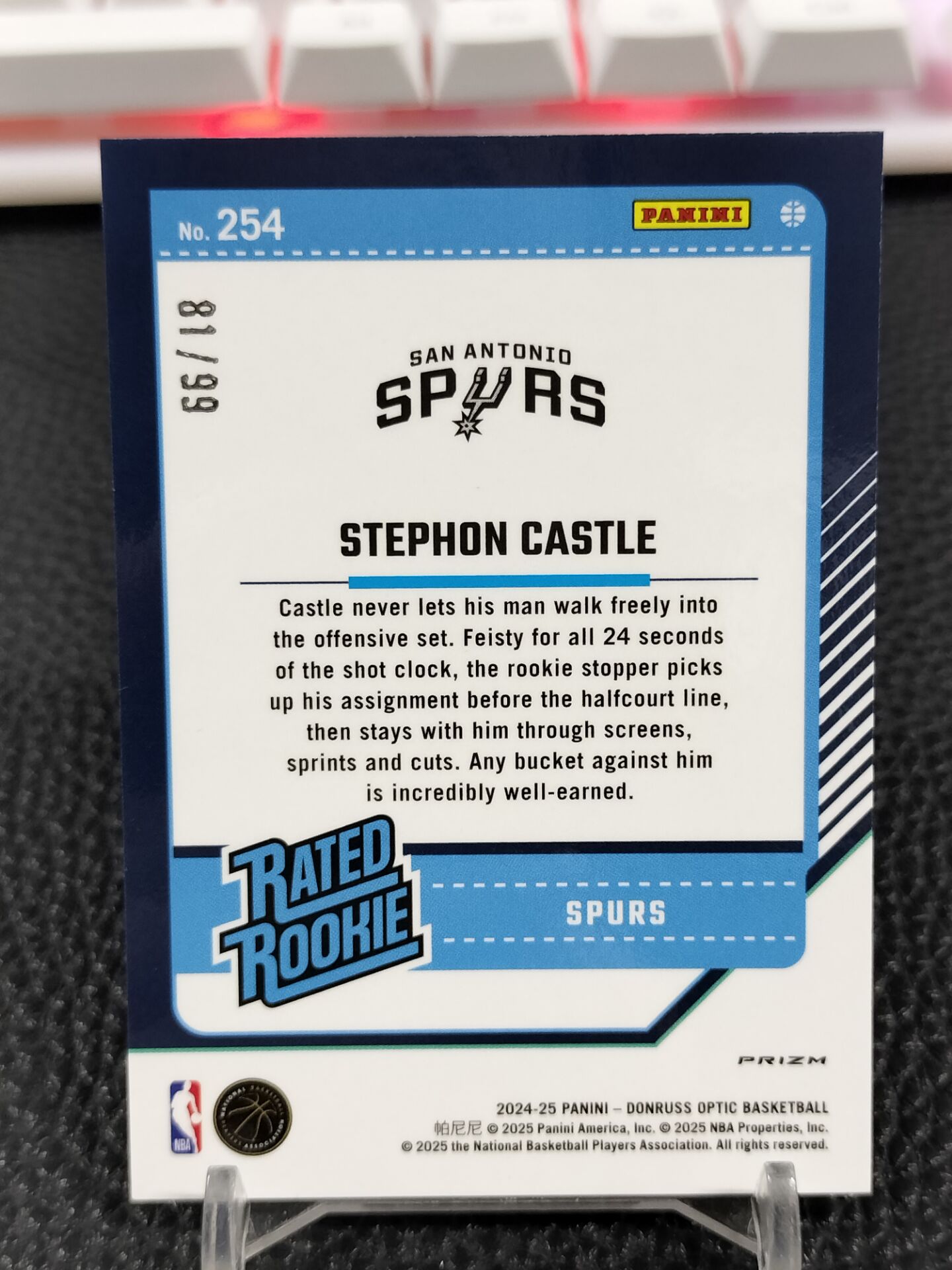 【浩行拍卖 截标预付82%】2024-25 panini donruss optic stephon castle 杜蕾斯 马刺 斯蒂芬 卡斯尔 rc 新秀 铜折 折射 81/99编 专收必备 瑕疵看图「探殿」1111h01飛