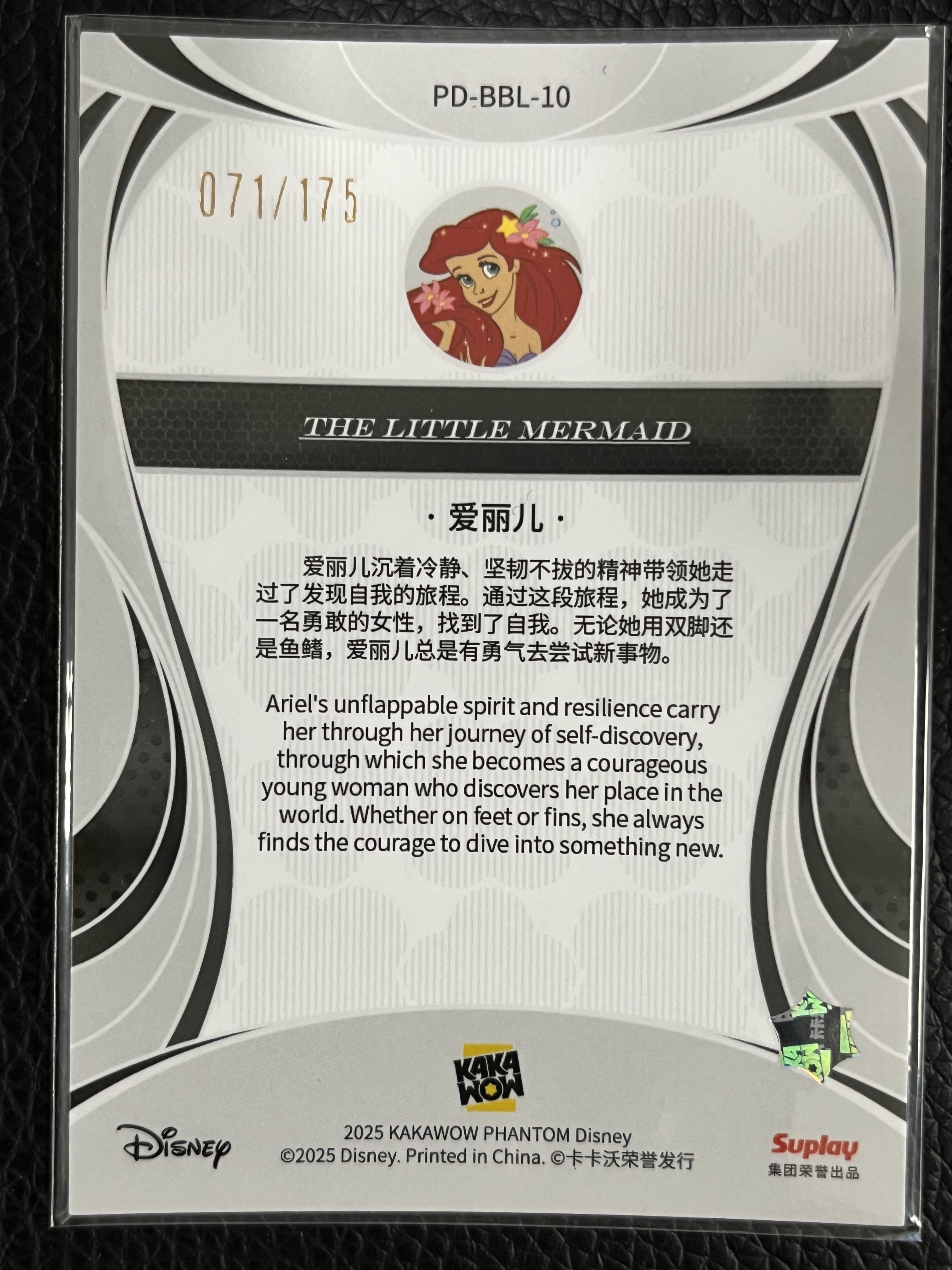 卡卡沃 2025 KAKAWOW PHANTOM 迪士尼系列收藏卡 基础卡-蓝 西GXX(11A)71/175编 卡号10 爱丽儿 Ariel