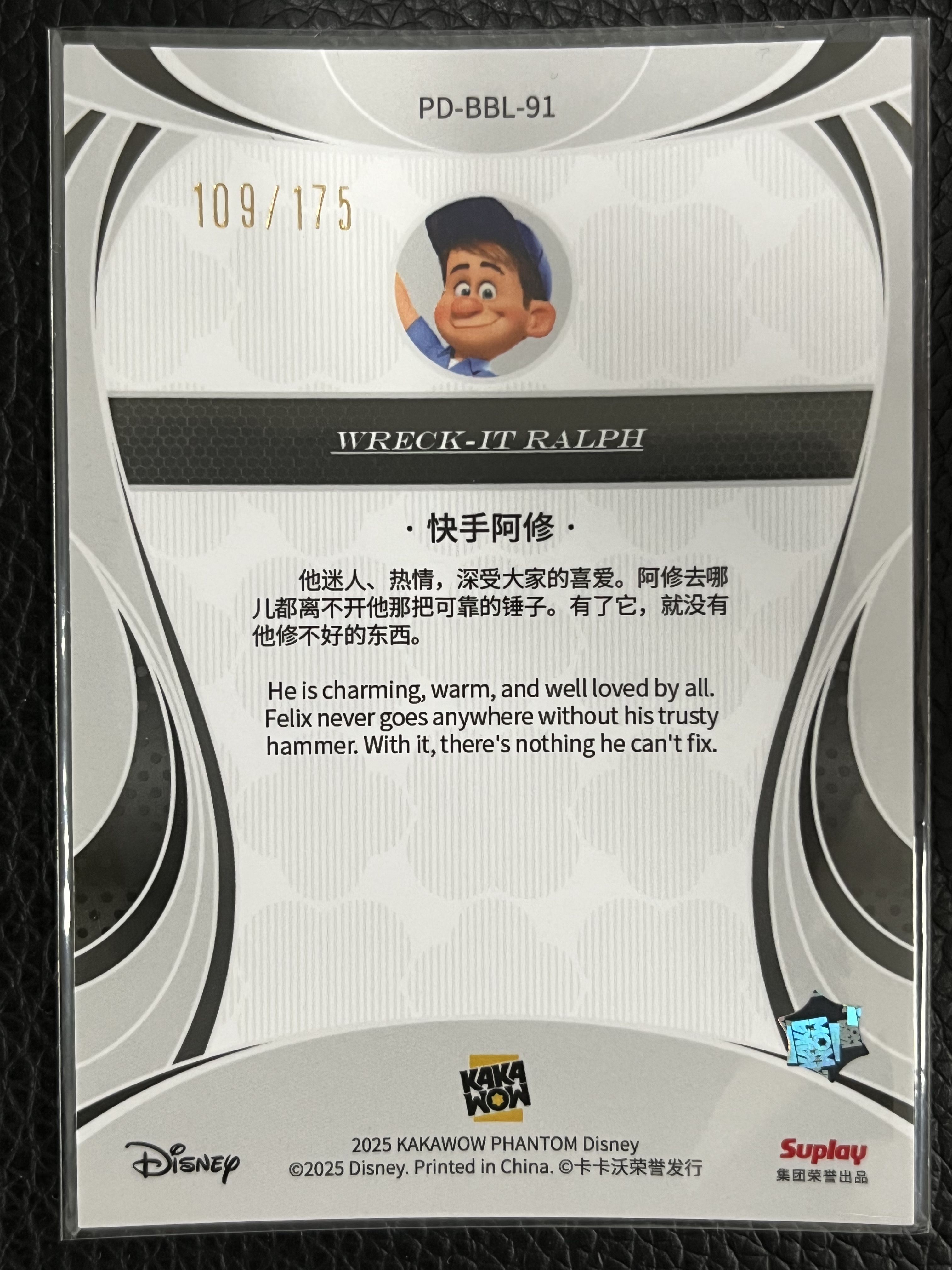 卡卡沃 2025 KAKAWOW PHANTOM 迪士尼系列收藏卡 基础卡-蓝 西GXX(11A)109/175编 卡号91 快手阿修 Fix-It Felix, Jr