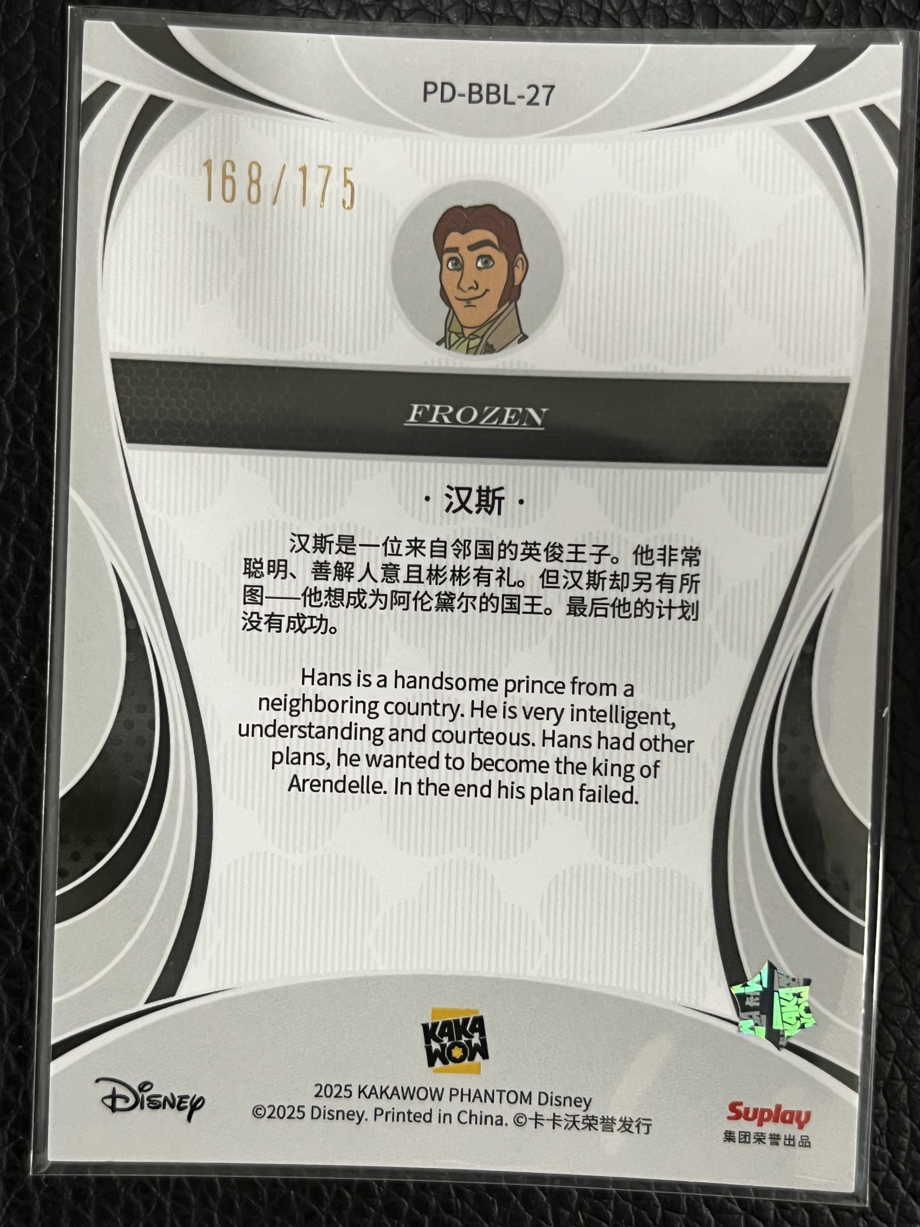 卡卡沃 2025 KAKAWOW PHANTOM 迪士尼系列收藏卡 基础卡-蓝 西GXX(11A)168/175编 卡号27 汉斯 Hans