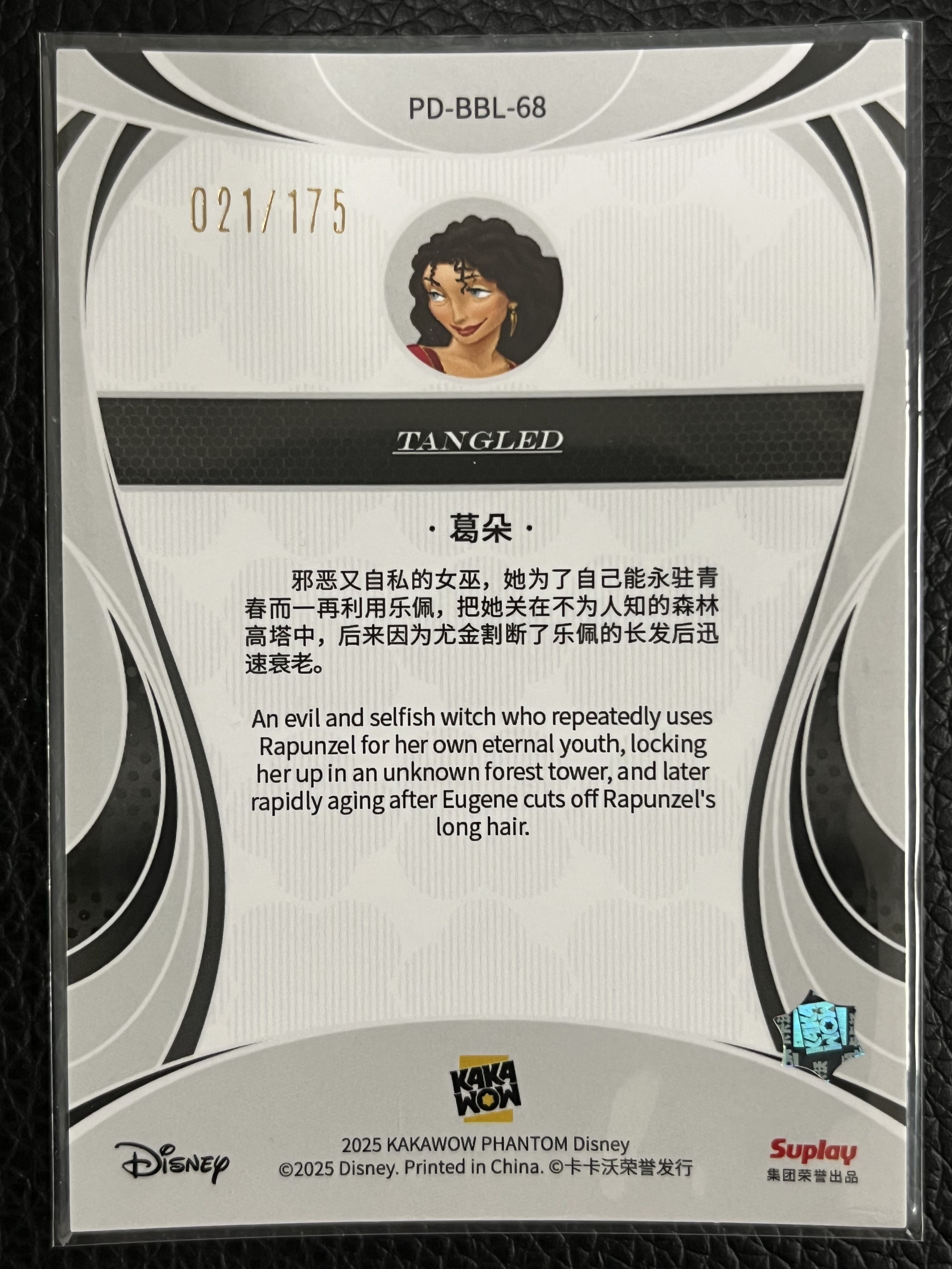 卡卡沃 2025 KAKAWOW PHANTOM 迪士尼系列收藏卡 基础卡-蓝 西GXX(11A)21/175编 卡号68 葛朵 Mother Gothel