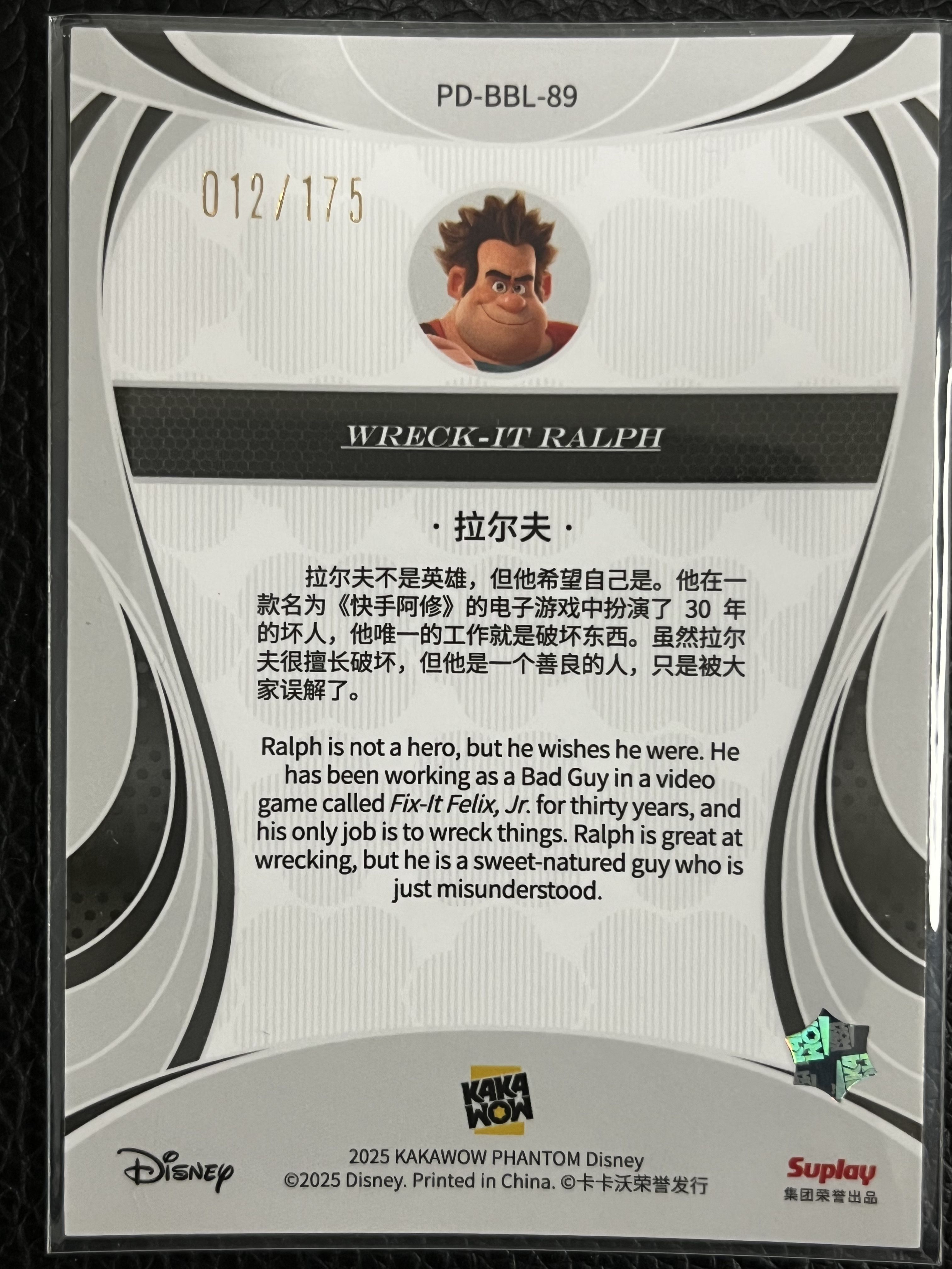 卡卡沃 2025 KAKAWOW PHANTOM 迪士尼系列收藏卡 基础卡-蓝 西GXX(11A)12/175编 卡号89 拉尔夫 Wreck-It Ralph